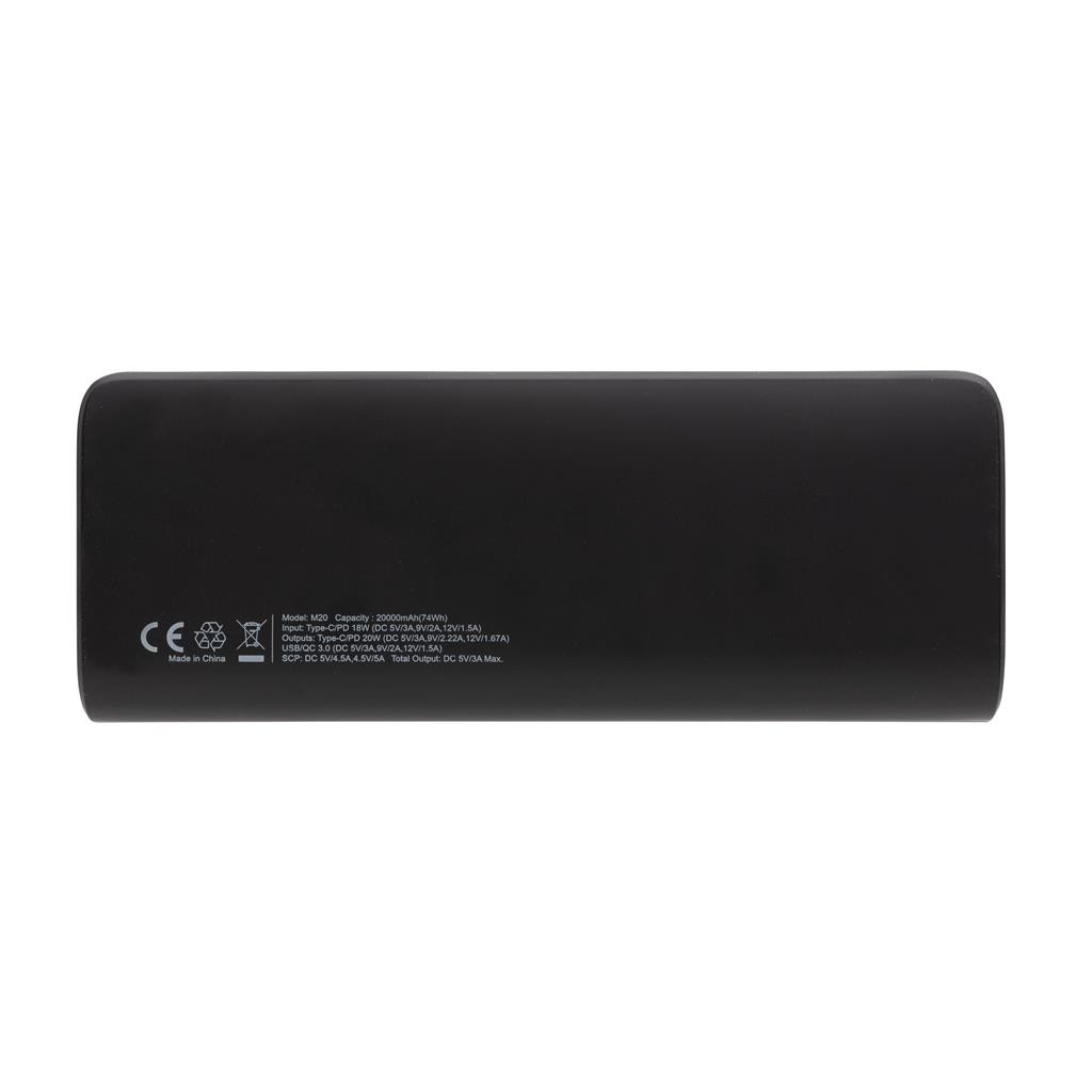 Rychlá powerbanka s kapacitou 20 000 mAh a výkonem 20 W PD. Výstupy: Quick Charge USB A 3.0, USB C PD: 20 W. Rychlé dobíjení powerbanky skrze USB C (18 W). Integrovaný led displej. Obal vyrobený z RCS recyklovaného ABS plastu. RCS (Recycled Claim Standard) je globální standard, který umožňuje ověřit použití recyklovaného materiálu v produktu napříč celým dodavatelským řetězcem. Celkový podíl recyklátu dle váhy produktu: 15 %. 2 baterií typu Li-ion súčasťou balenia.