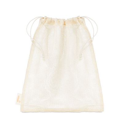 Sada 3 síťovaných sáčků na čerstvé potraviny vyrobená ze 100% bavlny. Jedna strana každé tašky je z bavlny (140 g/m²), kterou lze celoplošně potisknout dle přání. Druhá strana je ze síťované bavlny. V ceně je 1-4 barevně potištěná bavlněná etiketa na míru (cca 4x4cm) a papírový rukáv s černým potiskem loga. Každá taška může mít jiný design. Rozměry sáčků: 30x20cm, 30x35cm a 30x40cm (Vzhledem k povaze materiálu mají velikosti toleranci do 2cm.). Ručně omyvatelné.