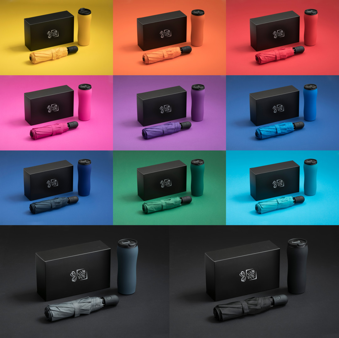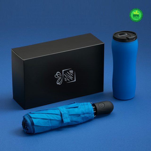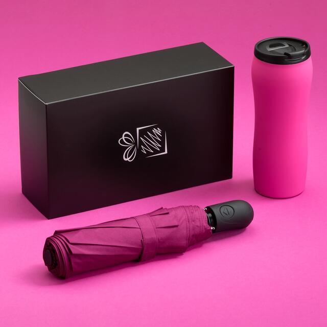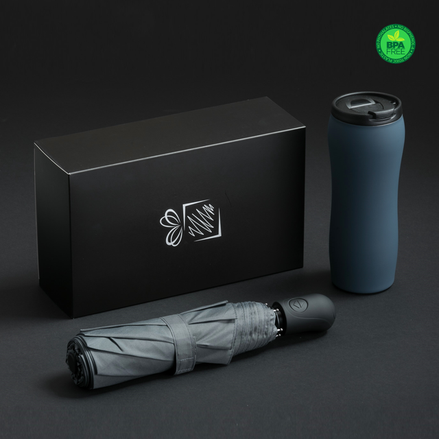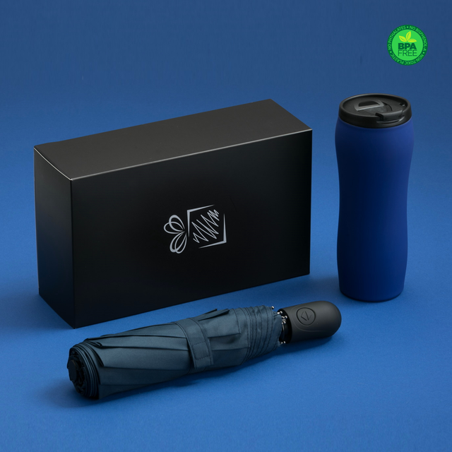 Praktická souprava obsahující termohrnek a plnoautomatický deštník z kolekce Cambridge.