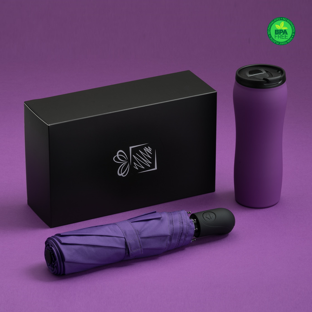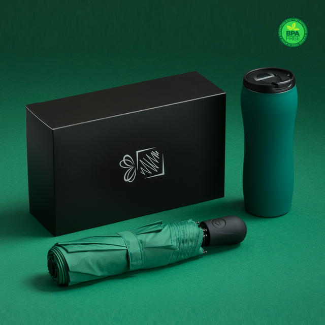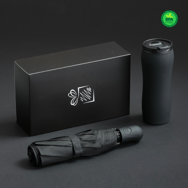 Termální hrnek (450 ml.) s dvojitými stěnami dokonale udržuje požadovanou teplotu - až 2 hodiny. Skládací deštník Cambridge nabízí dva odolné mechanismy: protivětrový systém (poskytuje dodatečnou flexibilitu, díky čemuž se deštník nezlomí ani při silném nárazu větru) a mechanismus DAS (systém automatického otevírání a zavírání).
