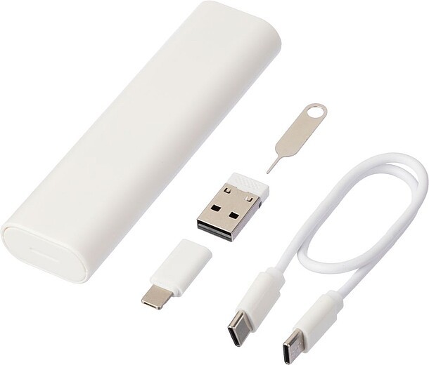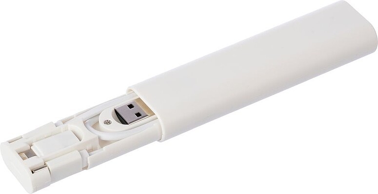 Sada kabelů a konektorů ABS. Kabel pro přenos dat a napájení (480 Mbps): Type-C na Type-C. Adaptéry: Type-C na Type-A a Type-C na 2-v-1 Lightning & micro-B. Úložné sloty Micro a Nano SIM. Nástroj na vyhazovací čep. Na boční straně je posuvný držák telefonu. Baleno po kusech v hnědé kartonové krabici. Materiál: plast. Rozměry: 10,8 x 3 x 1,6 cm