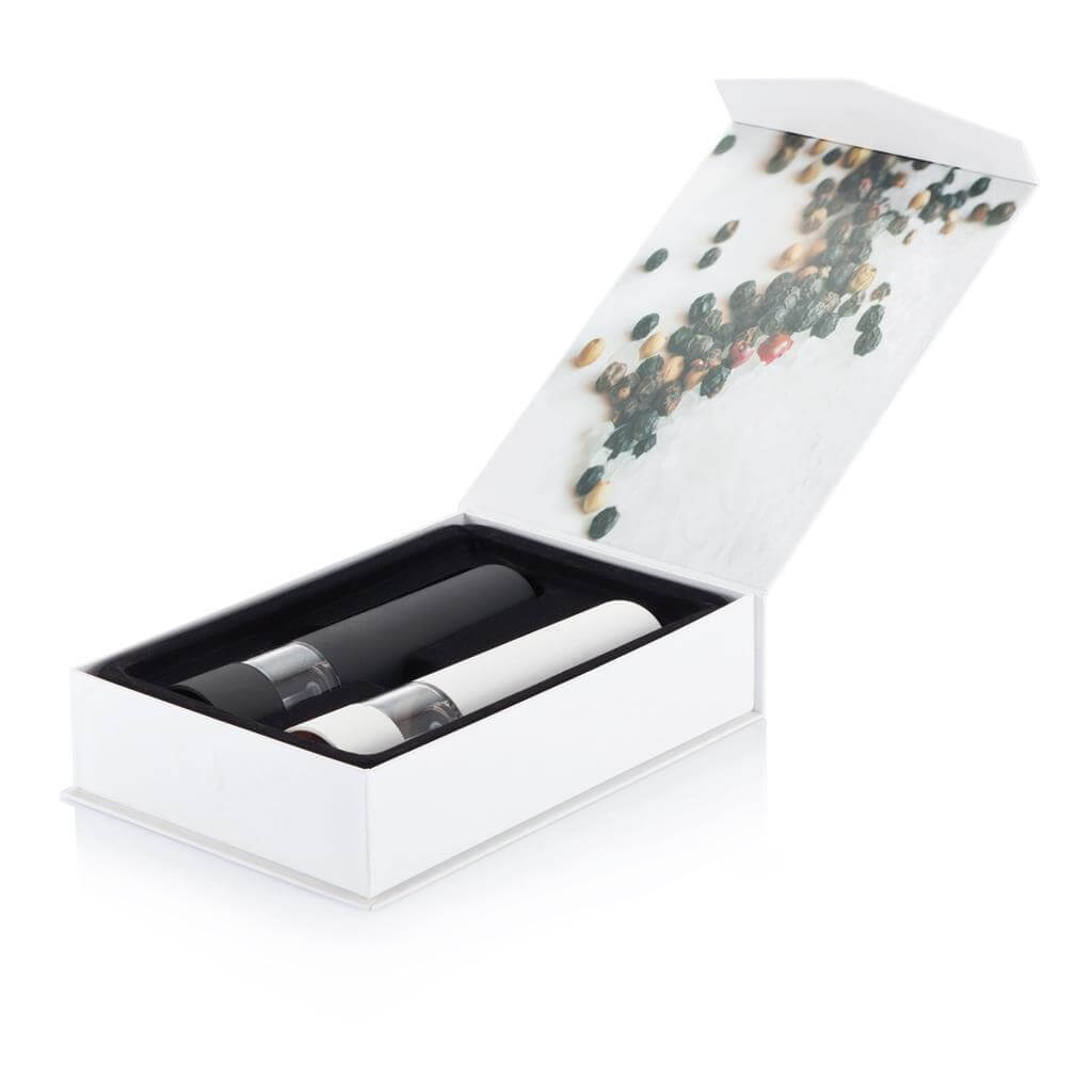 Nastavitelný keramický mlýnek s funkcí jemného mletí, tělo z ABS plastu s pogumovanou povrchovou úpravou. Balené v dárkové krabičce s magnetickým zavíráním. 6 baterií typu AA súčástí balení.