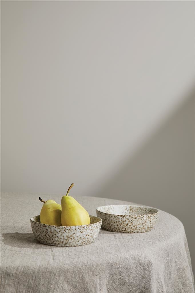 Sada 2 ks kameninových servírovacích misek. Díky charakteristkým nerovným tvarům a ručnímu glazování je každý kus skutečný unikát, který každého zaujme. Pevná kamenina je dostatečně odolná pro každodenní použití. Vhodné do myčky nádobí. Nejsou vhodné do mikrovlnné nebo pečící trouby.