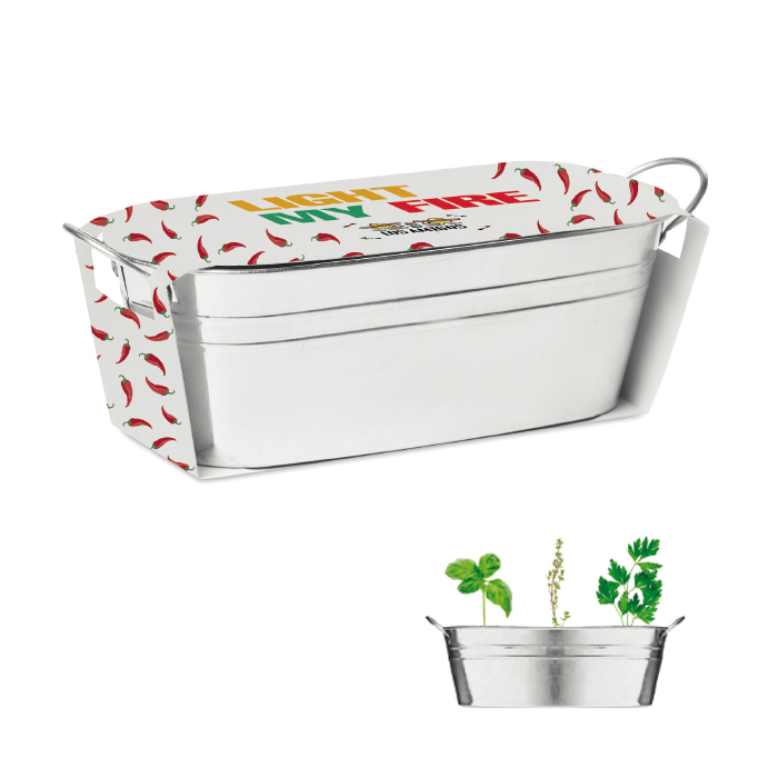 Vyrobeno v Evropě - Zinková vanička na rostliny s výběrem 3 semen, zeminy k setí a obalu na míru.