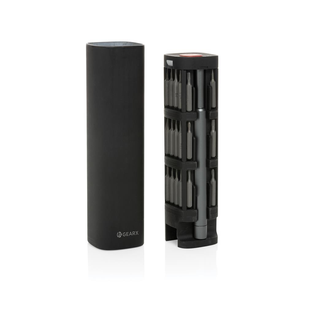 Sada 56ks precizního nářadí ve formě bitů. Včetně šroubováku pro nasazení bitů a kleštiček. Bity jsou magnetické pro snadné umístění a fixaci. Obal je vyrobený z RCS recyklovaného hliníku. RCS (Recycled Claim Standard) je globální standard, který umožňuje ověřit použití recyklovaného materiálu v produktu napříč celým dodavatelským řetězcem. Podíl použitého recyklovaného materiálu vzhledem k celkové váze produktu: 22 %.