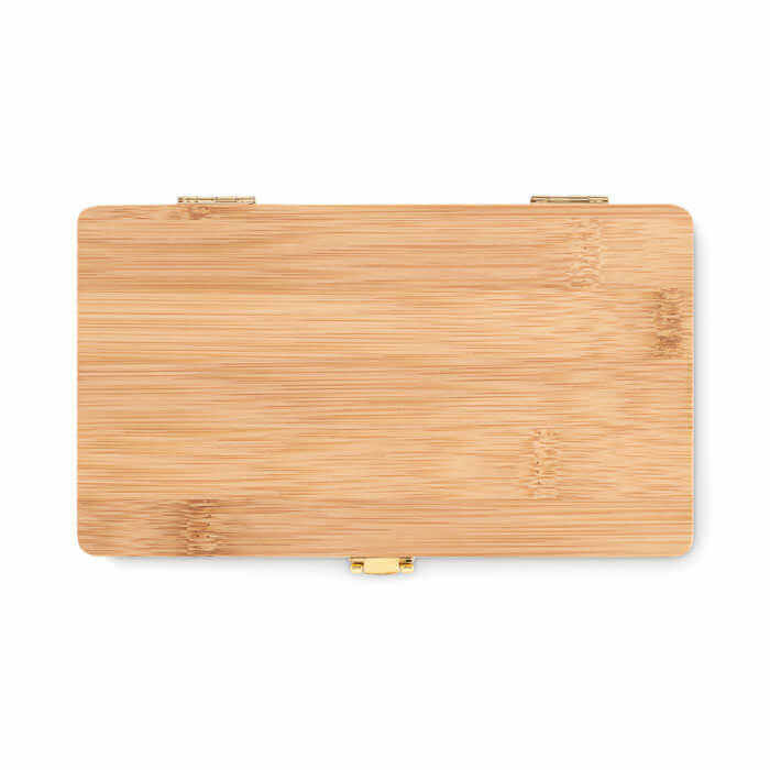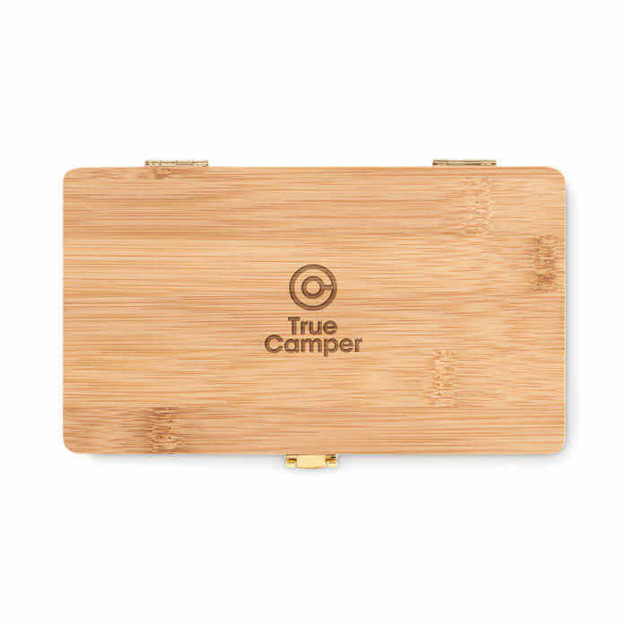 Praktická sada 21 kusů nástrojů prezentovaná v přírodně vyhlížejícím bambusovém pouzdře. Ideální dárek pro kutila nebo amatérského truhláře. Tato užitečná krabička obsahuje všechny základní nástroje, které by měl mít člověk doma pro případ potřeby oprav nebo drobných projektů. Obsahuje 3 šroubováky, deset bitů v držáku, tři velikosti drážek, tři velikosti Torx a jeden adaptér, čtyři nástrčné hlavice, jednu frézu, jednu rukojeť a jeden konektor. Bambus je přírodní materiál, u každého jednotlivého kusu se mohou vyskytnout drobné odchylky v barvě a velikosti, které mohou mít vliv na finální podobu potisku. Velikost krabičky 19,5 x 11,8 x 3 cm.
