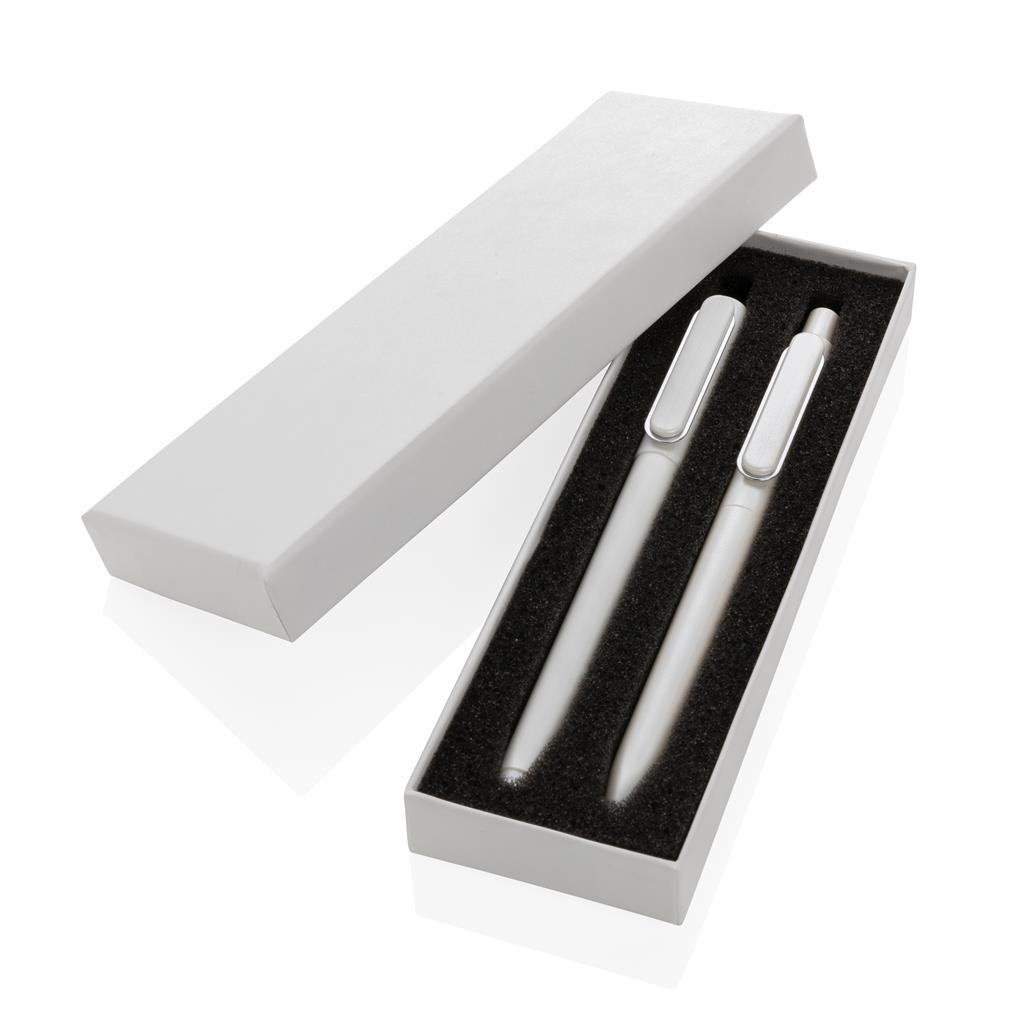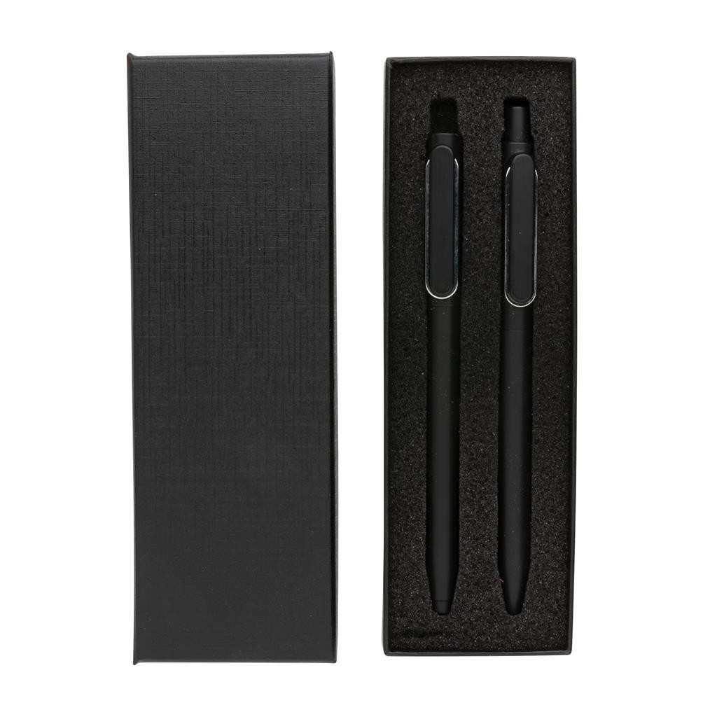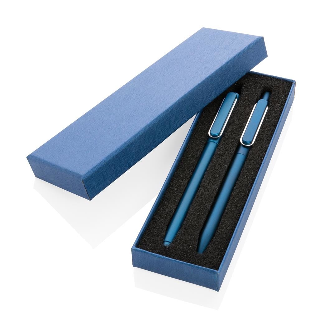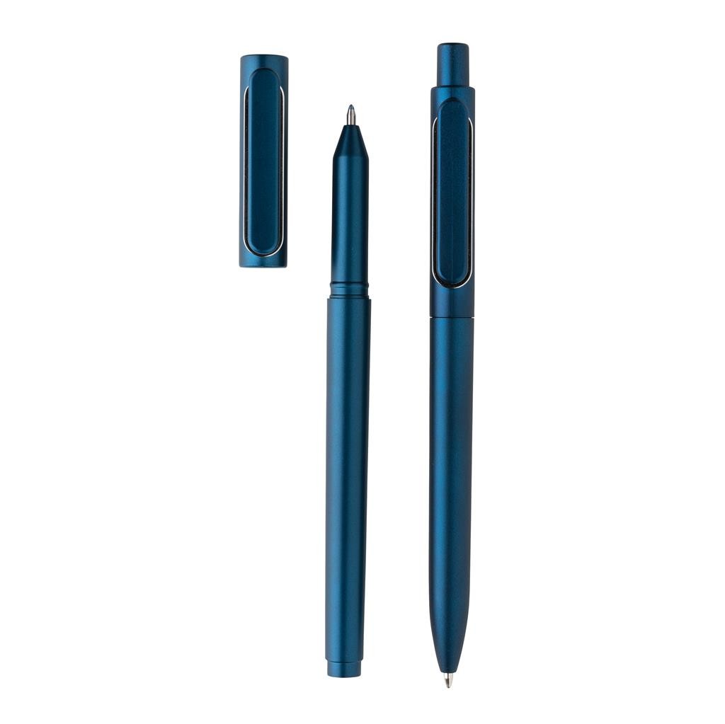 Sada moderních per X6. Kuličkové pero v unikátním metalickém provedení s designovým klipem. Kovová výplň pro perfektní vyvážení. S modrým německým inkoustem Dokumental® pro až 1200m textu. TC kulička pro mimořádně příjemné psaní. Pero s víčkem, které obsahuje inkoust s nízkou viskozitou pro mimořádně příjemné psaní a luxusní vzhled textu. Pro psaní až 800m textu. Modrá barva inkoustu obou per.