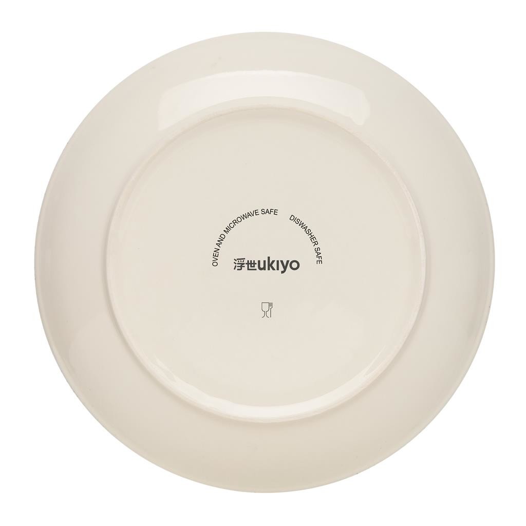 Sada 2ks talířů vyrobených z keramiky v čistém bílém designu s černým lemem. Minimalistický neutrální vzhled se hodí do každé domácnosti. Lze snadno kombinovat s ostatními produkty z kolekce Ukiyo. Vhodné do mikrovlnné trouby a myčky nádobí. Průměr: 27cm. Baleno v kraftové dárkové krabičce.