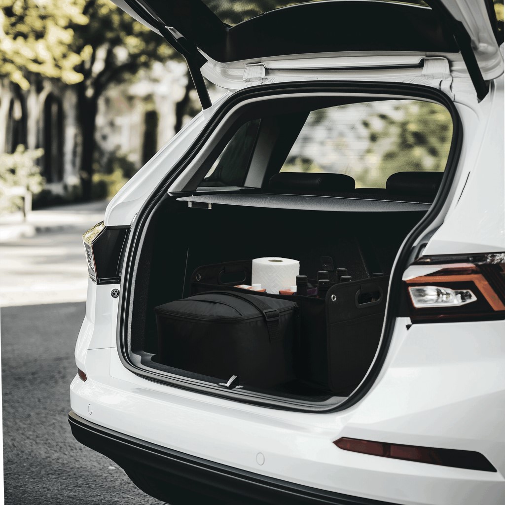 Sada tašek do zavazadlového prostoru ISO-GADGET: 1.) odnímatelná chladicí taška s nastavitelným ramenním popruhem a zasouvací kapsou na víku se zipem, 2.) taška s nastavitelným ramenním popruhem.) velká skládací taška se 2 přihrádkami a podložkami na podlahu pro spoustu úložného prostoru a také 1 síťovanou kapsou, 2 integrovanými držadly pro přenášení, se suchým zipem na dně pro co nejlepší držení v zavazadlovém prostoru a 4 kovovými oky pro ukotvení - lze ji složit a zajistit pružným pásem pro úsporu místa, když se nepoužívá - obě tašky lze používat samostatně, chladicí taška se dokonale vejde do kterékoli přihrádky hlavní tašky