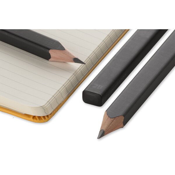 Sada tří černých grafitových designových tužek. Moderní hranatý tvar se zaoblenými rohy, vyrobeno z cedrového dřeva, vysoce kvalitní 3mm tuha tvrdosti 2B = 2 ks a HB = 1 ks.