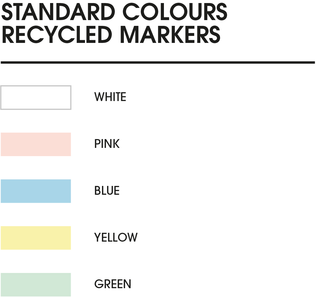 Samolepicí papírky ComboNote, pevný obal z recyklovaného papíru obsahující kávový odpad ComboNote (106 x 77 mm, zavřený) s recyklovanými lepicími papírky (80 g/m2) o rozměrech 100 x 72 mm (100 listů) a 50 x 72 mm (25 listů) ; a recyklované markery ve 3 různých barvách (25 každé barvy).