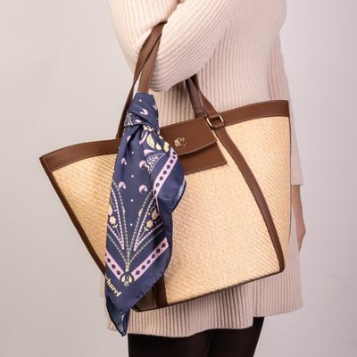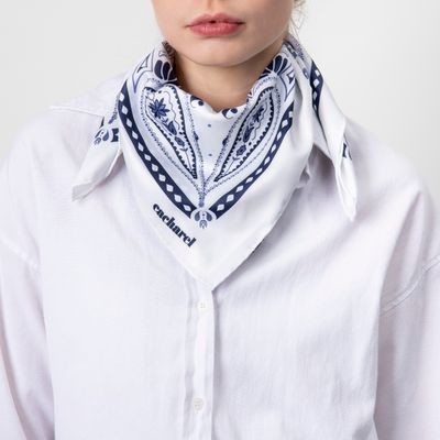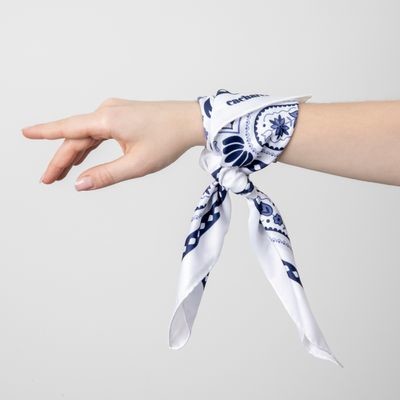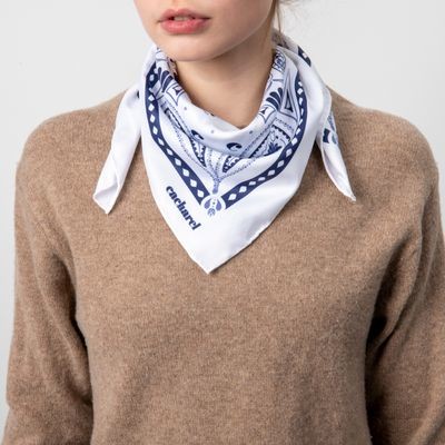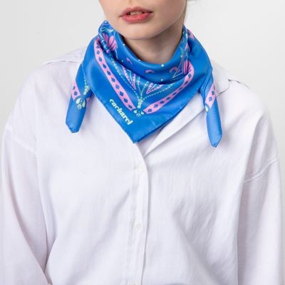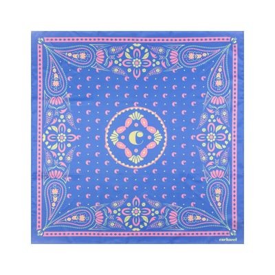 Šátek "Alesia" zdobí potisk inspirovaný paisley. Pro tento styl jsme si chtěli pohrát s grafickými potisky a popovými barvami, abychom mu dodali skutečný moderní nádech. Tento šátek je vyroben z veganského hedvábí (polyesterový kepr). Jeho velikost 65X65 cm z něj činí velmi všestranný doplněk, který lze nosit na stovky různých způsobů.