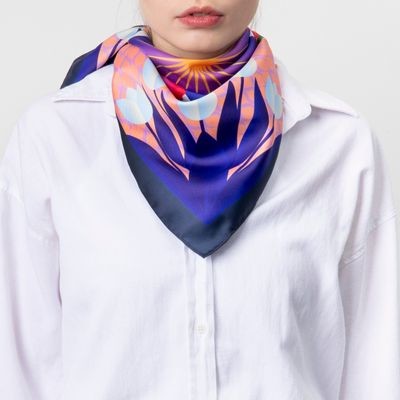 Šátky Alix se svou zářivou barevnou paletou a luxusními keprovými texturami jsou inspirovány imaginární botanickou zahradou a jsou navrženy tak, aby přinesly nádech barvy do každého oblečení. Dostupné ve 2 barevných provedeních. Tento námořnický šátek Alix v sobě spojuje hluboký námořnický rám s odstíny růžové, fialové a oranžové pro ženský a zářivý výsledek. Dokonalé pro okamžitý barevný nádech do každého outfitu.