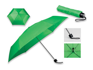 Skládací polyesterový deštník s manuálním otevíráním a plastovou rukojetí a obalem, 6 panelů, složený ø 4,7x23,5 cm.