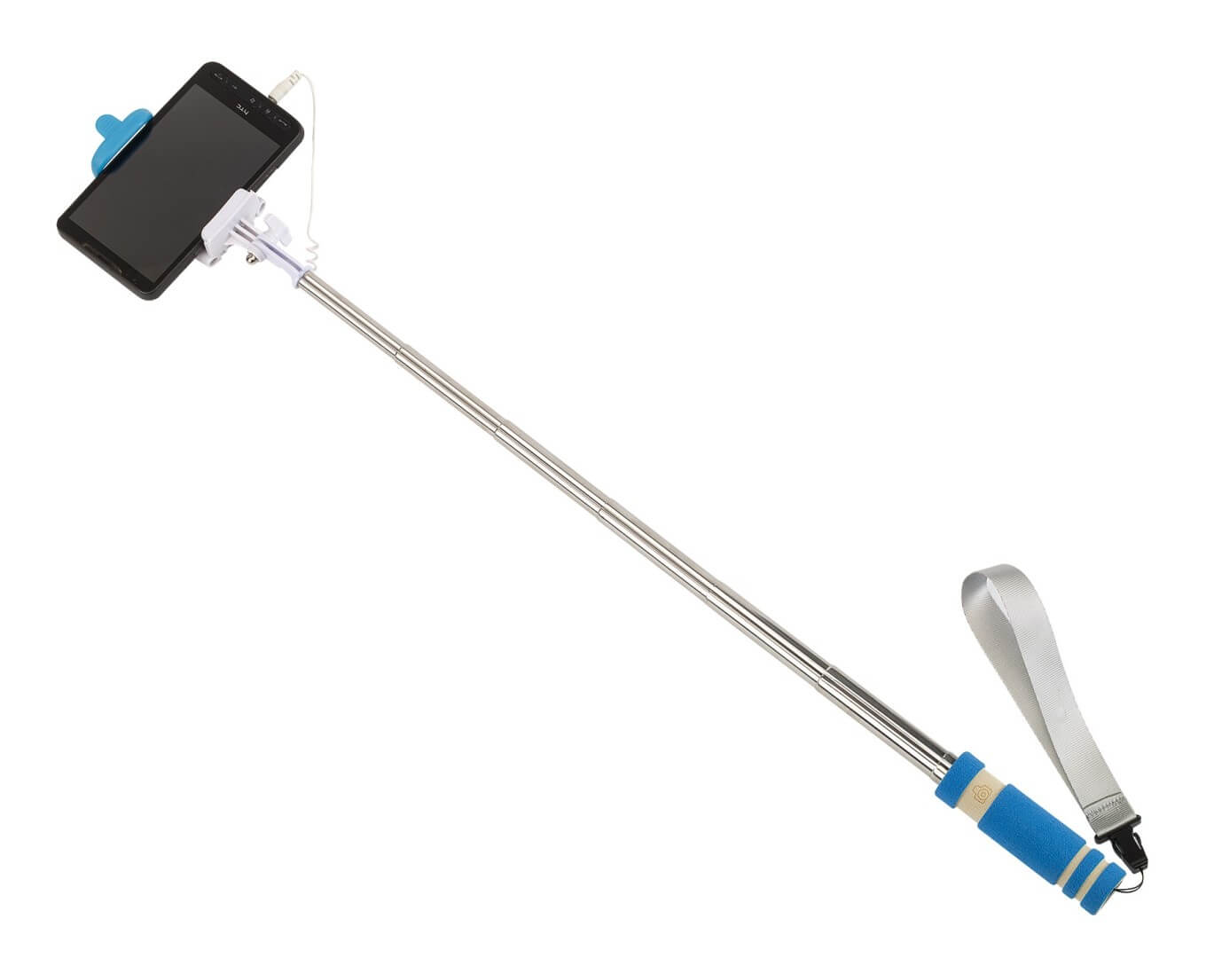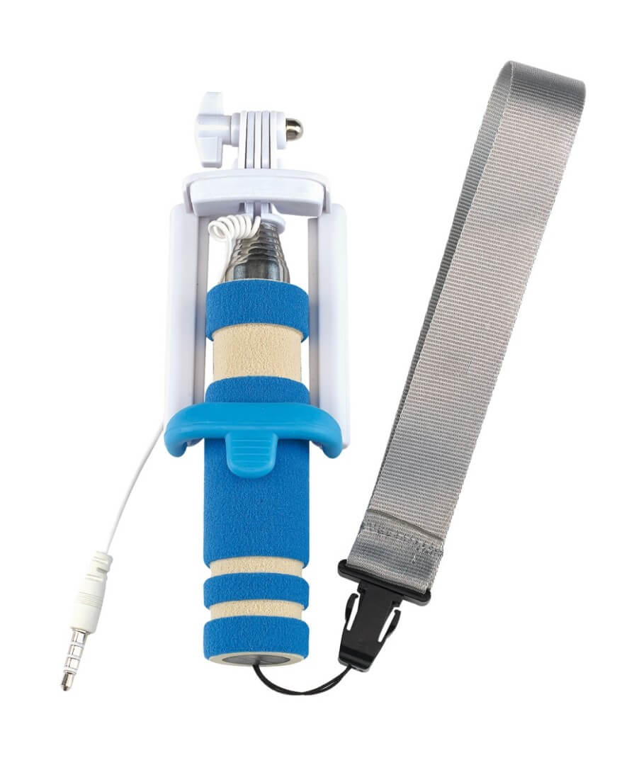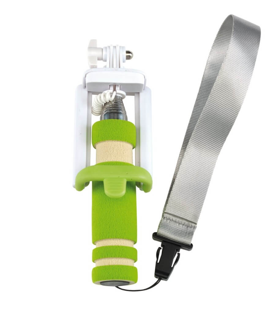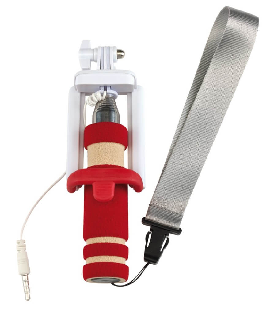 Teleskopická self tyčka "self Mini" - vhodná pro vytvoření autoportrétu se smartphonem širokým až 8,5 cm: integrovaný kabel lze připojit k výstupu zvukového konektoru telefonu, spouštěcí tlačítko na rukojeti, kompatibilní s operačním systémem Android 4.1.2 a iOS 5.0 a novějším (v závislosti na konfiguraci), teleskopická tyč rozšiřitelná od cca 23 cm do cca 61 cm, držák s úhlem sklonu až do cca 270 stupňů, pěnová s připínatelným poutkem na zápěstí