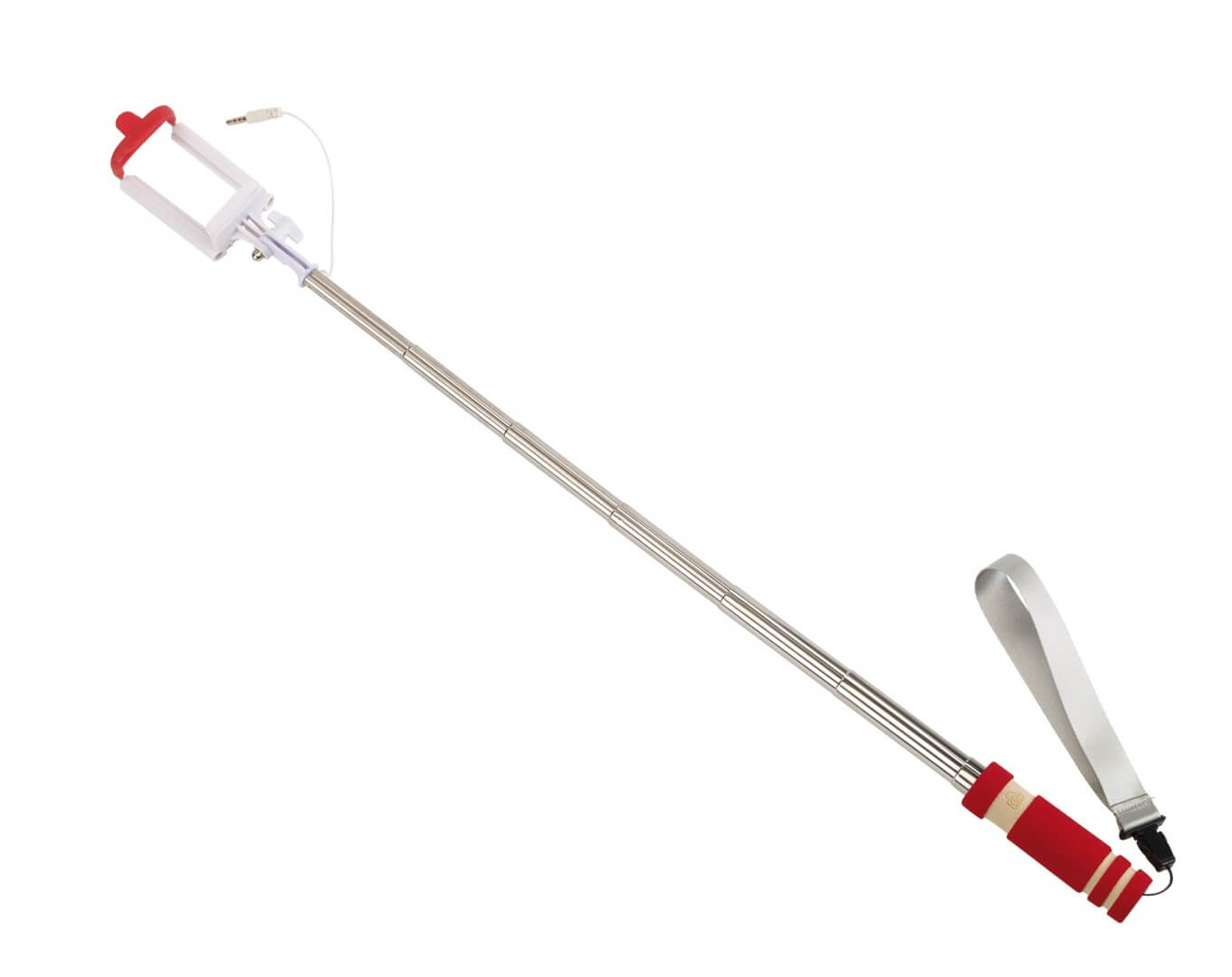 Teleskopická self tyčka "self Mini" - vhodná pro vytvoření autoportrétu se smartphonem širokým až 8,5 cm: integrovaný kabel lze připojit k výstupu zvukového konektoru telefonu, spouštěcí