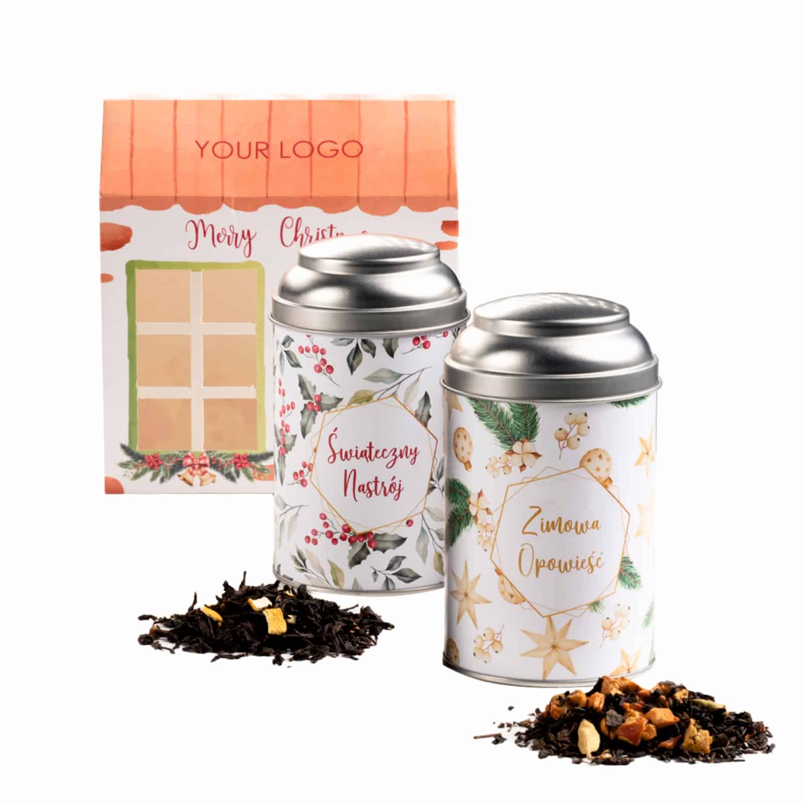 Set čajů TEA HOUSE představuje dvě dózy čajů v plechovce. Na výběr máte základní příchutě nebo také vánoční verzi čajů, které v zimě navodí tu správnou vánoční atmosféru. Balení produktu je standardně v bílém papíře. Volitelné v kraftovém papíře., 100% biologicky odbouratelný obal.