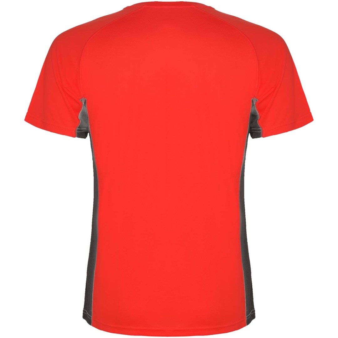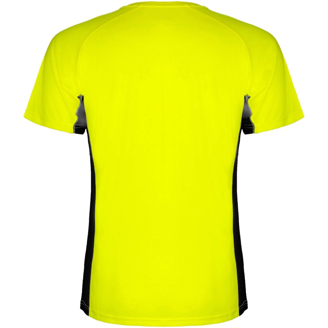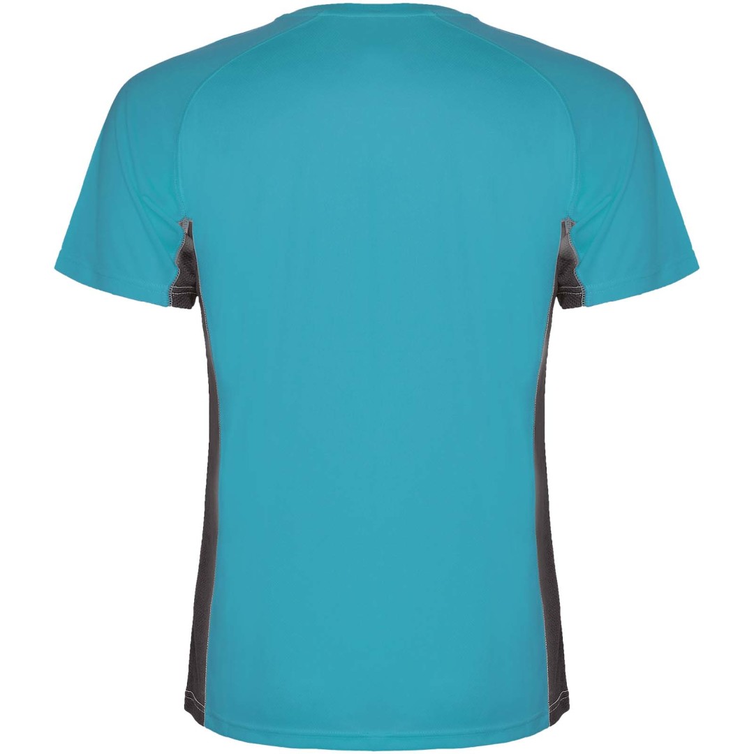 Technická a prodyšná látka. Kombinace dvou polyesterových látek: Hlavní látka „ptačí oko“, boční panely a vnitřní rukáv z mikroperforované látky. Kulatý výstřih s vnitřními zesílenými krytými švy. Odnímatelný štítek.