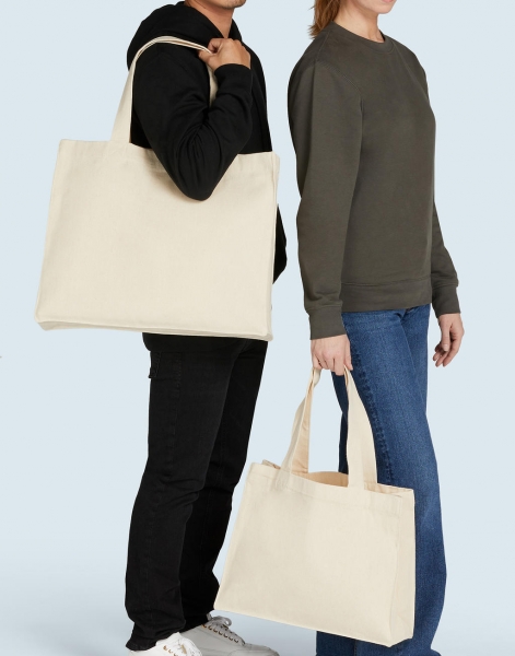 280 g/m² -100 % bavlna (plátno) -Dlouhá plochá ucha (LH): délka cca 60 cm -Křížové prošití na držadlech pro větší stabilitu -Dno a boky lze rozložit -Kovová karabina uvnitř pro zavěšení příslušenství, klíčenky, peněženky atd. (Rozměry v cm: L: 42x32x12, XL: 49x39x12 -Max. 4939-43939: M: 37x27, XL: 44x34 -Vhodné pro vyšívání, DTG, sítotisk a transfer (nažehlovací kapsy)