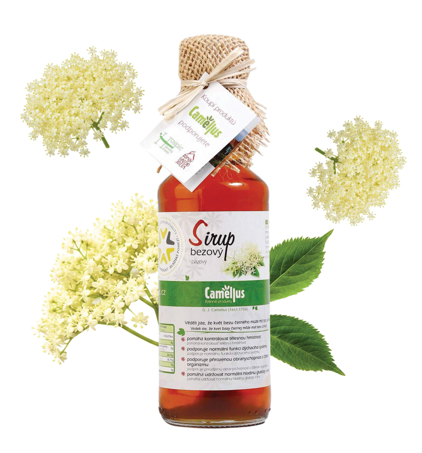 Bylinný sirup s přírodní příchutí bezu, bez konzervantů a umělých barviv. Obsahuje 46,5 % extraktu ze sušených květů černého bezu, slazený cukrem. Vhodný pro přípravu horkých i studených nápojů – ředí se v poměru 1:8 s vodou. Před použitím protřepat. Přírodní zákal nebo usazenina nemají vliv na kvalitu. Objem: 500 ml