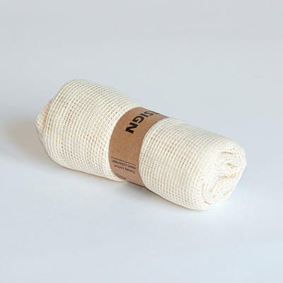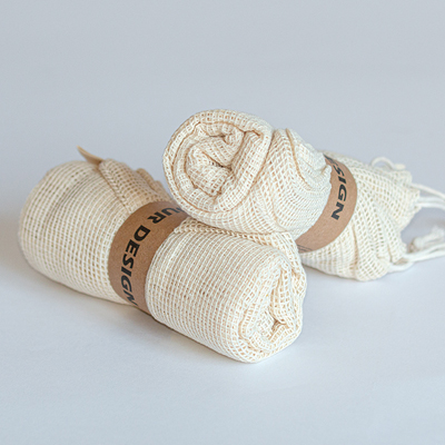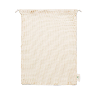 Síťovaná taška na čerstvé potraviny vyrobená celá ze 100% bavlny. 1-4 barevně potištěná bavlněná etiketa (cca 4x4cm) je zahrnuta v ceně. Hromadné balení (bez použití plastů) a volitelně každá taška může být zabalena do papírového obalu s vlastním potištěným designem. Rozměry tašky: 30x40 cm (vzhledem k povaze materiálu mají velikosti toleranci do 2cm). Ručně omyvatelná.