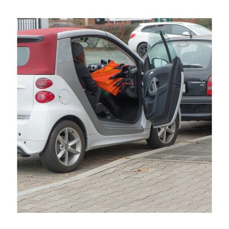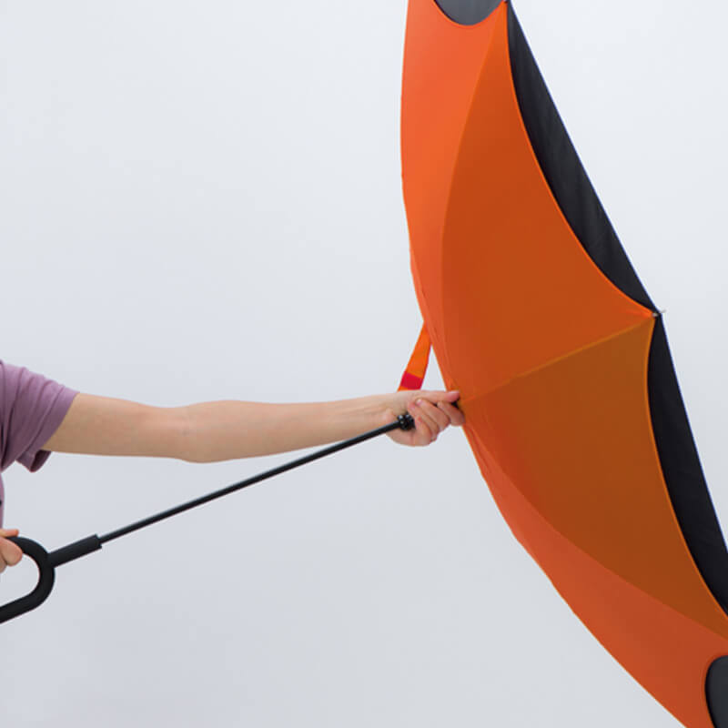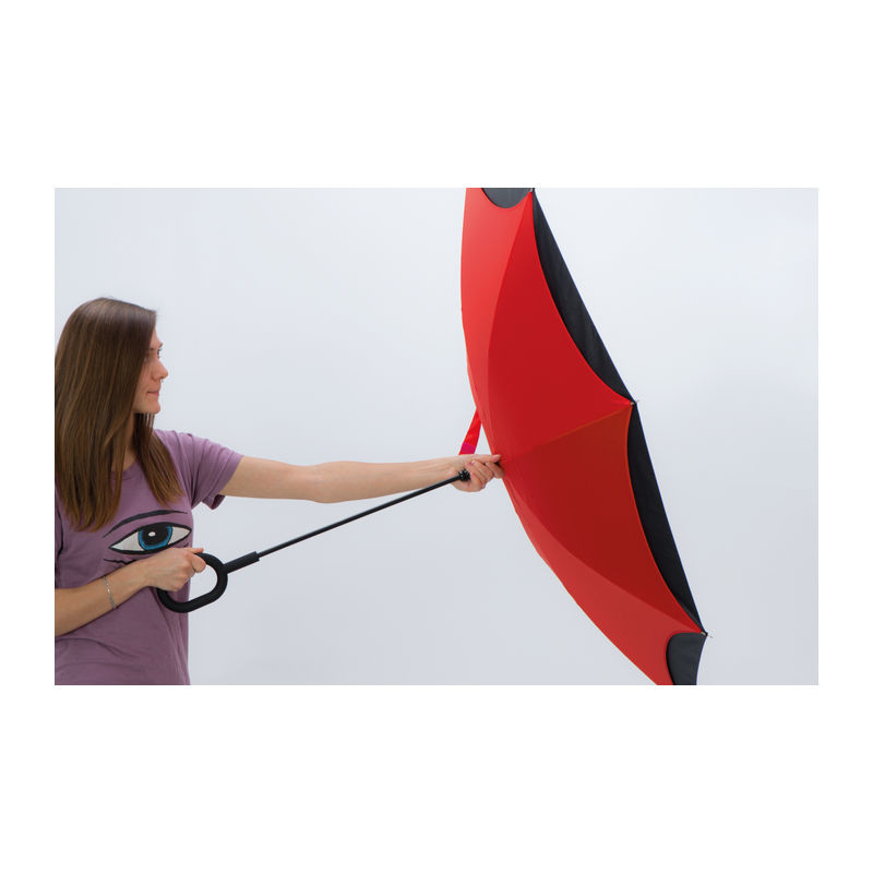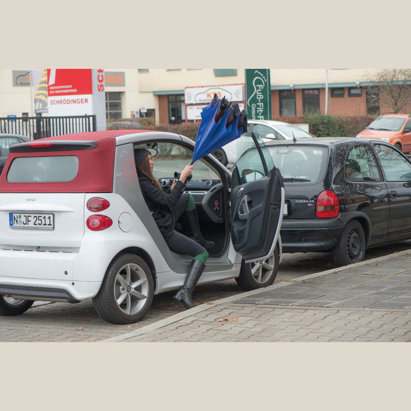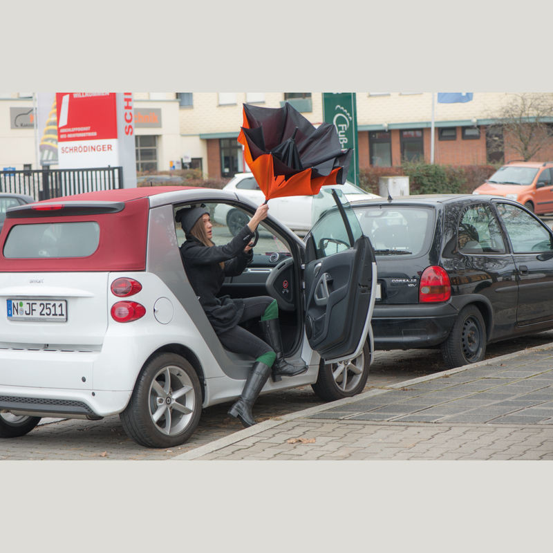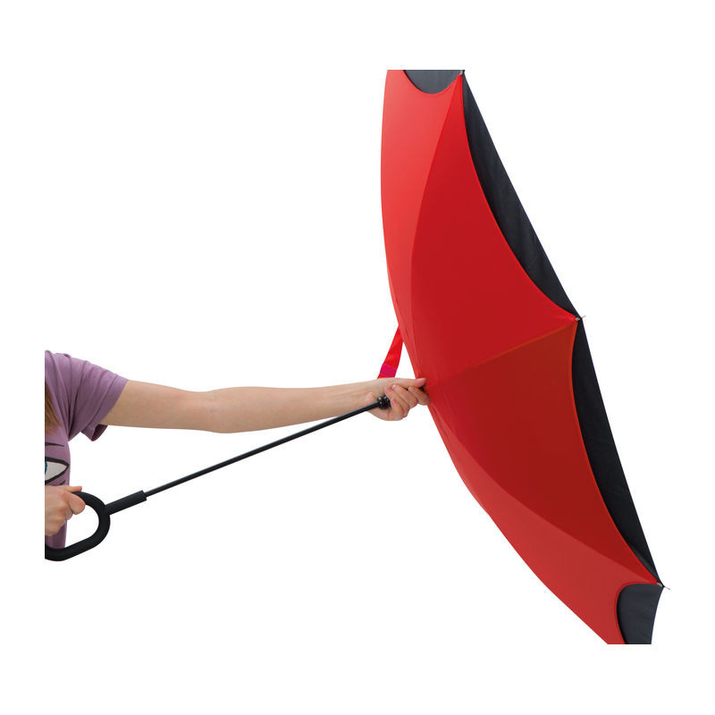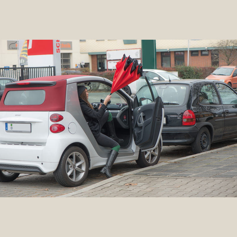 REVERSE opačně fungující skládací deštník z materiálu 190T pongee s C rukojetí pro snadné uchycení na zápěstí. Díky tomuto řešení můžete mít vždy volné obě ruce. Jako potisk doporučujeme sítotisk.