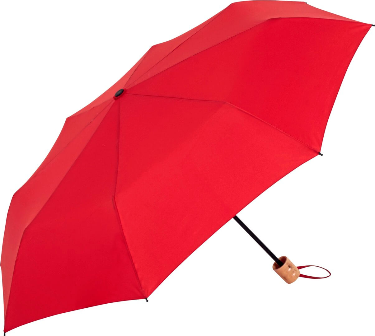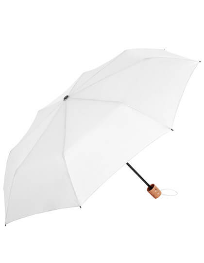 Vrchlík: 100 % polyesterové pongee (recyklované), rukojeť: pravé dřevo, tyč: ocel | Snadná manipulace díky bezpečnostní zarážce | Vysoce kvalitní větruvzdorný systém pro maximální flexibilitu rámu při silnějších poryvech větru | Rukojeť z pravého dřeva, lze přidat propagační logo