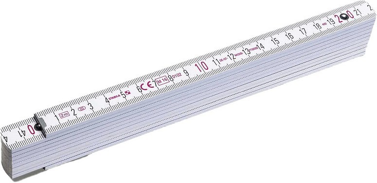 Dřevěný skládací metr značky Stabila. Metr je délky 2m. Stupnice je v centimetrech. Povrch metru má speciální ochrannou vrstvu odolnou vůči nárazu. Metr má extra silné nerezové panty. Rozměry: 24 x 1.7 x 3.4 cm Kartonové množství v ks: 120