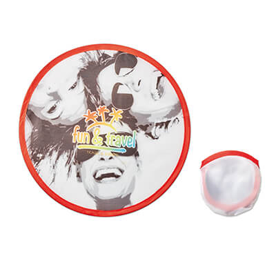 Plnobarevný potisk na skládací frisbee a sáček, který je jeho součástí. Velikost: Průměr 25cm a sáček 10x10cm. Okraje frisbee a sáček jsou barevně volitelné dle vzorníku v galerii. Jednotlivě baleno.