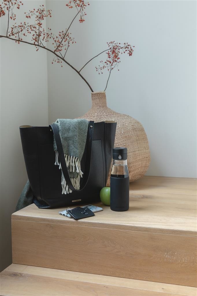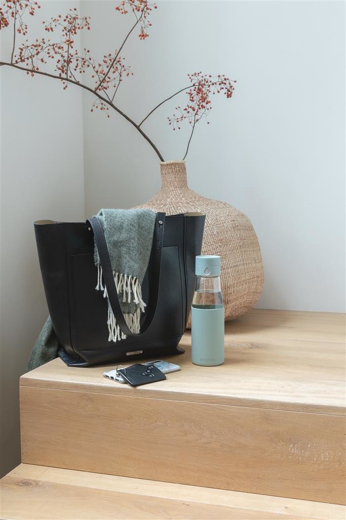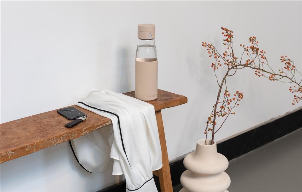 Sledujte svůj každodenní pitný režim s touto chytře navrženou, nepropustnou, skleněnou lahví na vodu z kolekce Ukiyo. Víčko po každém naplnění lahve a manuálním otočením víčka značí větší kapku vody, čímž tak neztratíte přehled o vypitém množství vody. Tělo lahve je vhodné do myčky nádobí. Objem 600 ml.