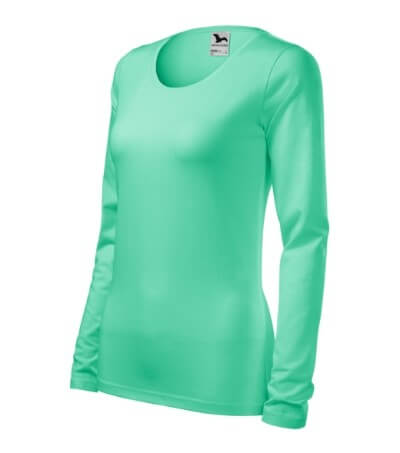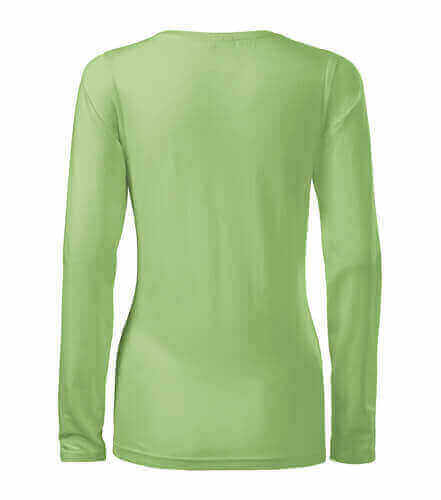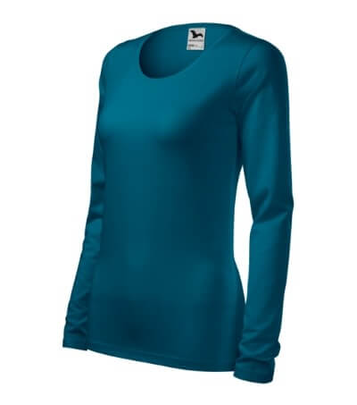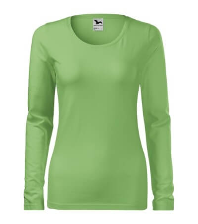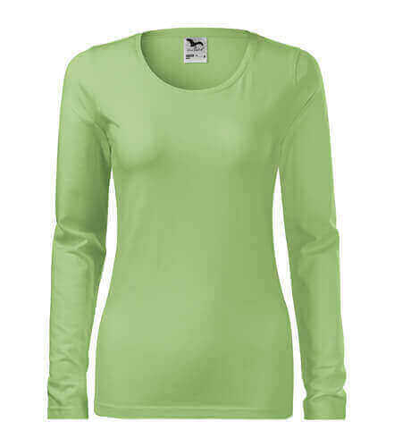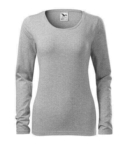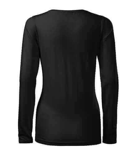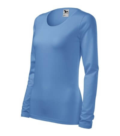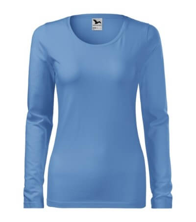 Dámské triko vyšší gramáže s dlouhým rukávem. Příjemný materiál s přídavkem elastanu pro větší stálost tvaru. Přiléhavý střih s bočními švy zvýrazňující dámskou siluetu. Úzký lem průkrčníku ze stejného materiálu. Vnitřní část zadního průkrčníku je začištěna páskou. Zpevněný ramenní šev. Vhodné pro potisk a výšivku.
