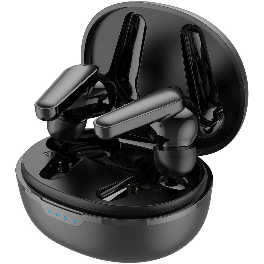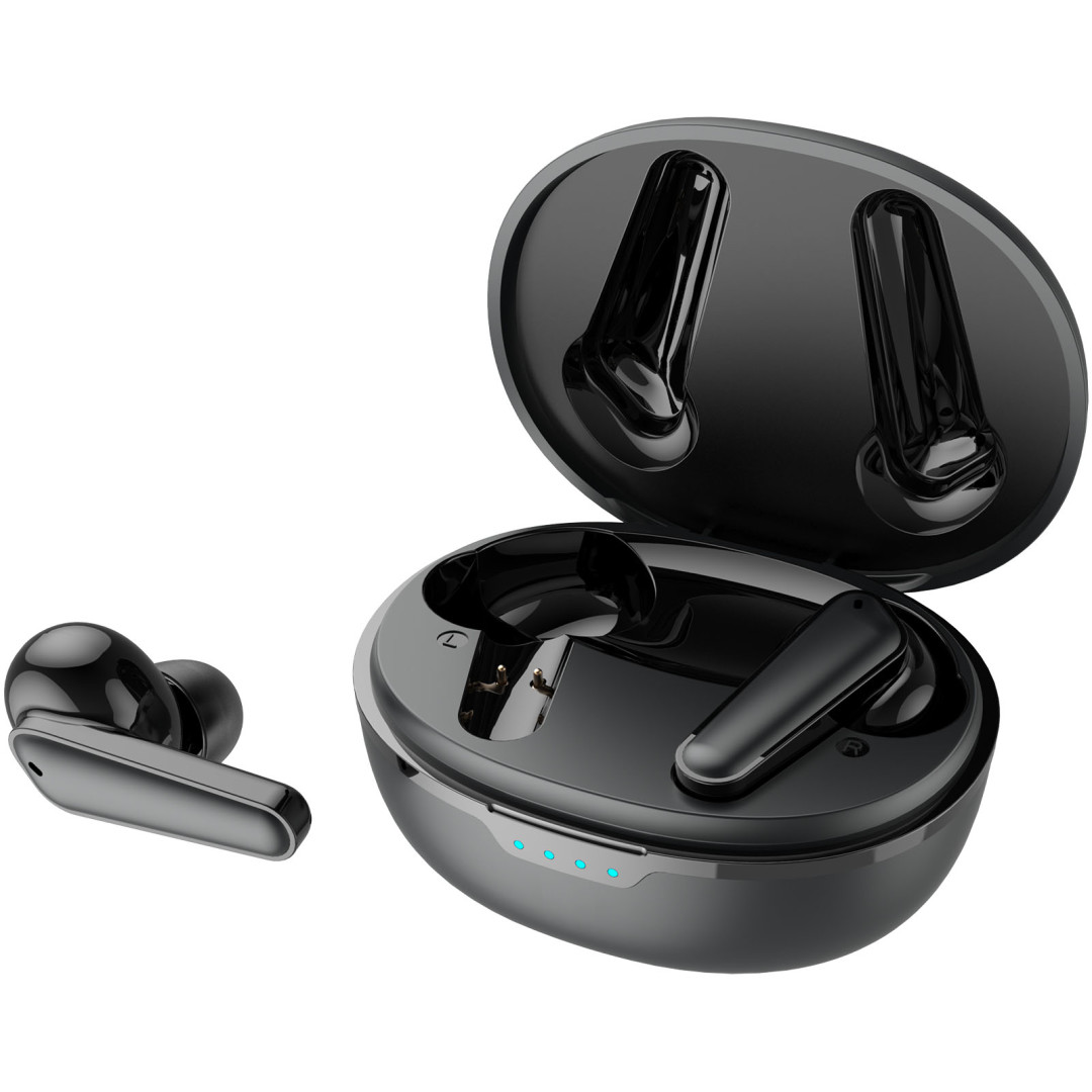 Sluchátka s technologií ENC a ANC, která potlačuje okolní hluk, takže volajícího je při hovorech jasně slyšet (ENC) a hudbu z připojeného zařízení (ANC). Díky výkonné baterii sluchátka vydrží na jedno nabití až 7 hodin. Doba nabíjení sluchátek: 1,5 hodiny. Plně nabitá základna dokáže sluchátka dobít až 3x.