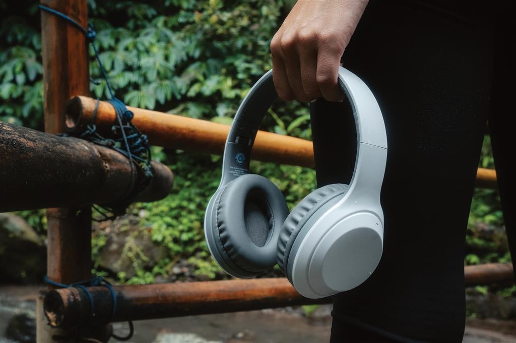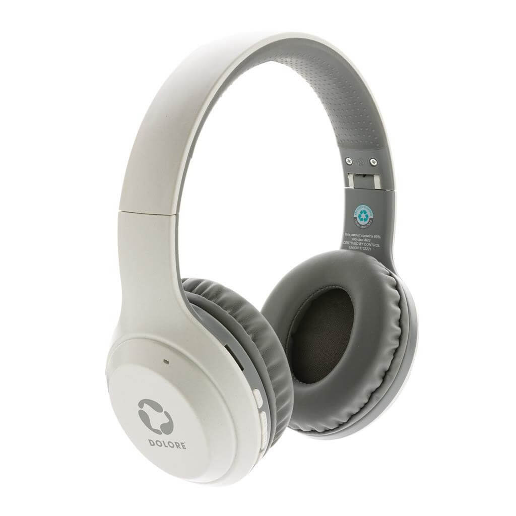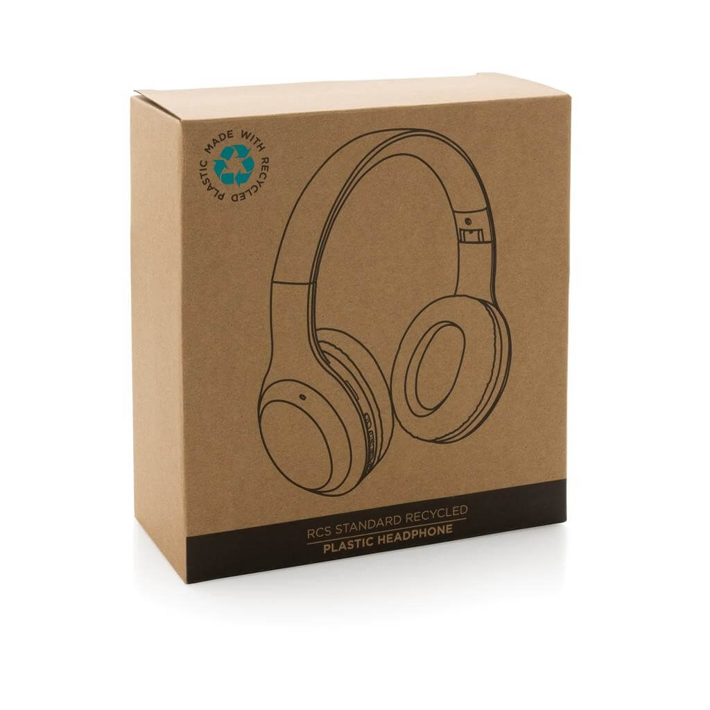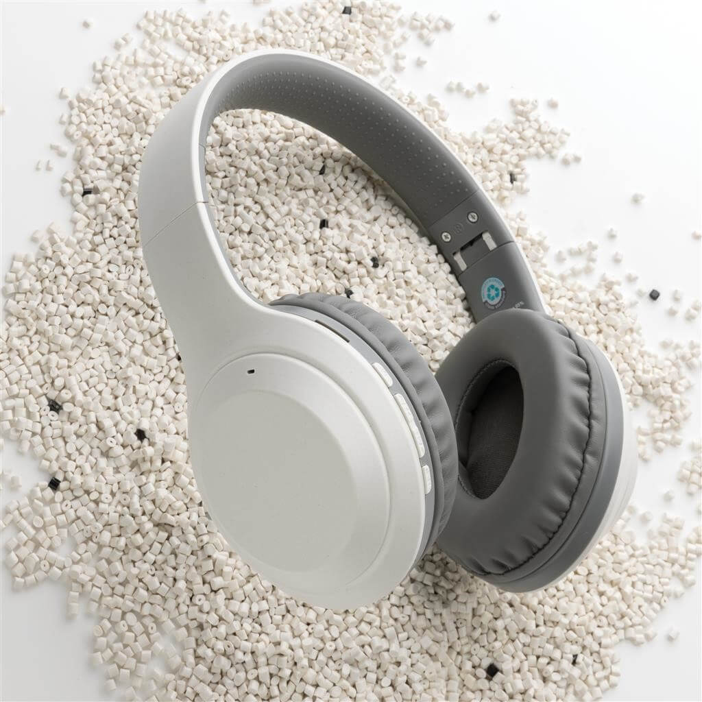 Skládací sluchátka přes hlavu vyrobená z recyklovaného ABS plastu s RCS certifikací. RCS (Recycled Claim Standard) je globální standard, který umožňuje ověřit použití recyklovaného materiálu v produktu napříč celým dodavatelským řetězcem. Baterie s kapacitou 200 mAh pro poslech po dobu až 6h na jedno nabití (1,5h). BT 5.0 zajišťuje snadné a stabilní bezdrátové připojení na vzdálenost až 10m. Mikrofon pro přijem hovorů. Včetně nabíjecího kabelu z recyklovaného TPE. Výrobek je kompletně bez PVC. 1 baterie typu Li-poly v balení.
