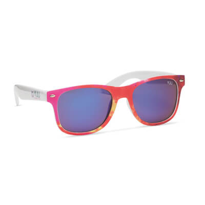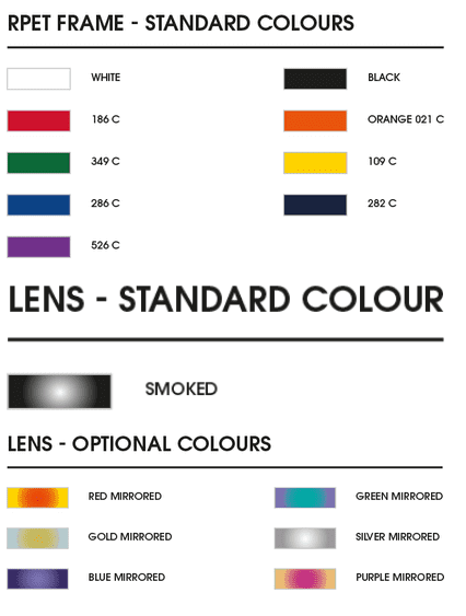 Vytvořte si svůj oblíbený design slunečních brýlí se spoustou možností. Rám, čočky i postranice podle vašich představ. Brýle jsou potisknutelné logem na jednotlivých částech nebo si nechte vnější stranu vytisknout svým designem od okraje po okraj (plnobarevně). Sluneční brýle jsou jednotlivě baleny v papírovém sáčku. Můžete si však zvolit RPET sáček (9x17cm), který lze celý potisknout. K brýlím si můžete připlatit antibakteriální úpravu.