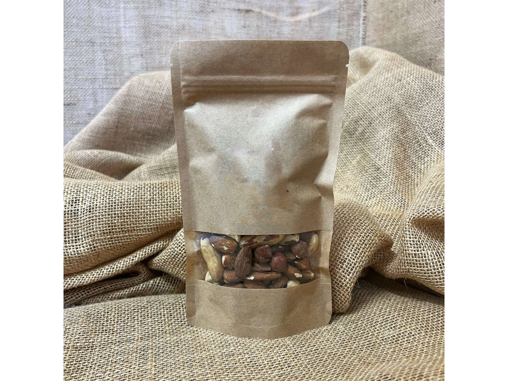 Složení: MANDLE natural JUMBO 25% (USA), KEŠU 25% (Afrika, Vietnam),PARA 25% (Bolívie, Brazílie), LÍSKOVÉ OŘECHY 25% (Turecko)