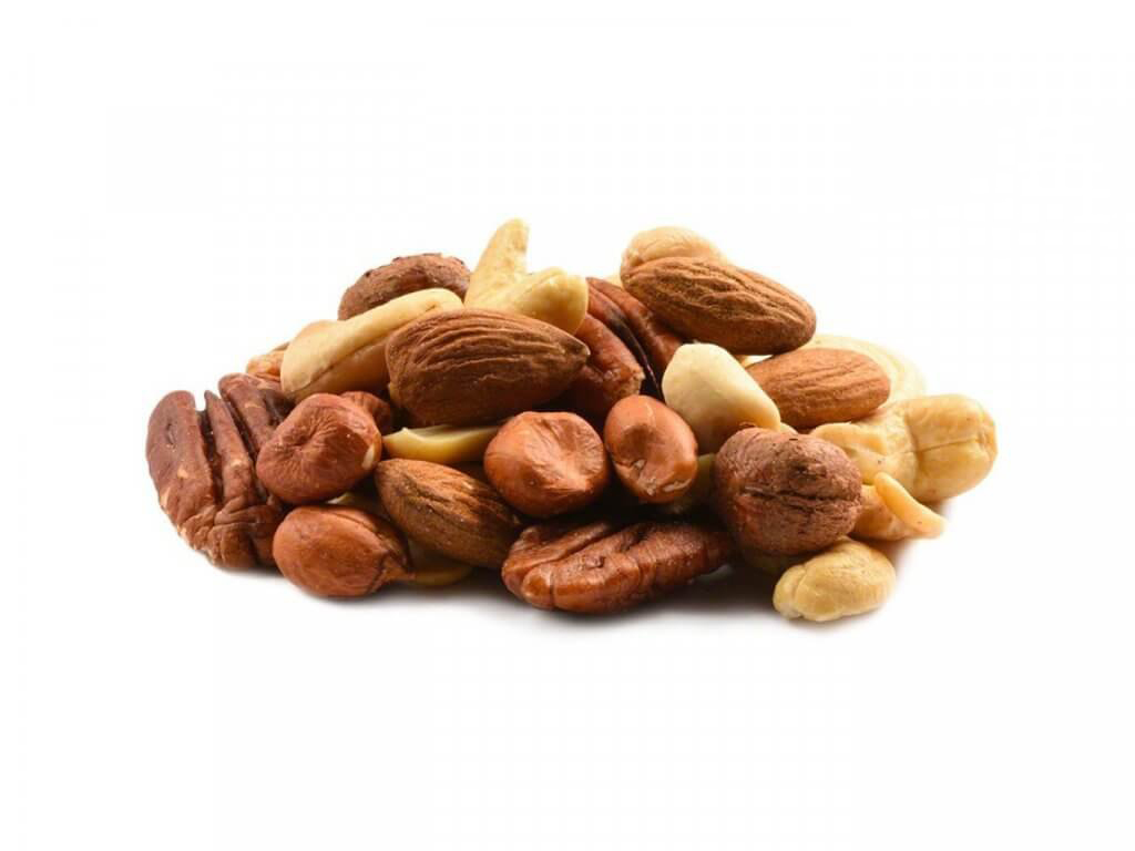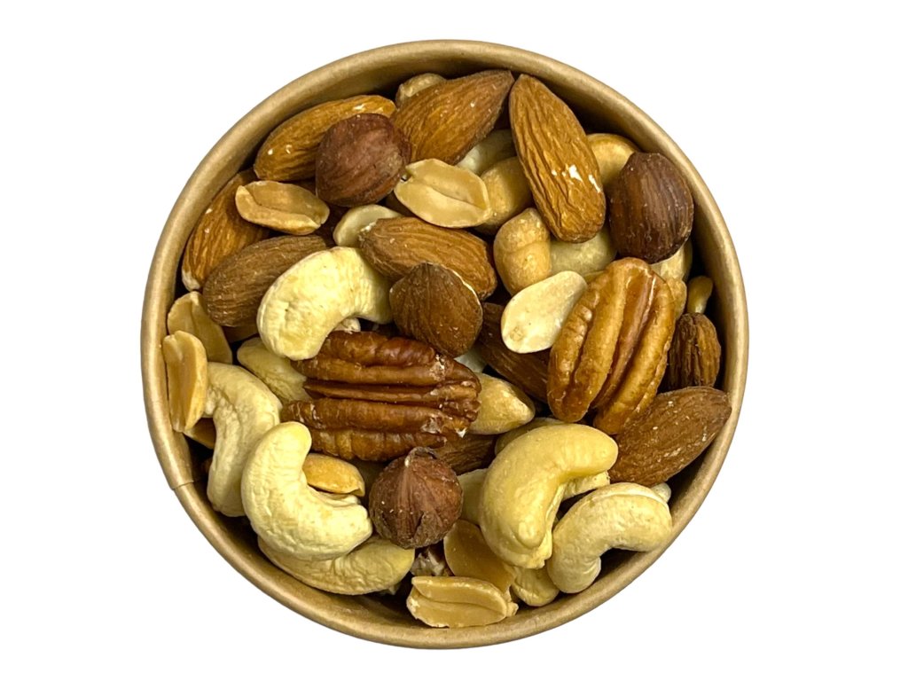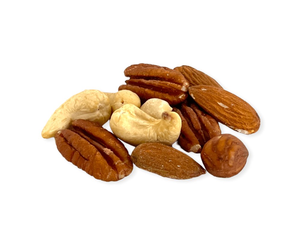 Složení: MANDLE natural výběrové nonpareil 20% (USA), KEŠU 20% (Afrika, Vietnam), ARAŠÍDY loupané 30% (Čína),LÍSKOVÉ OŘECHY 10% (Turecko), PEKANOVÉ ořechy 10% (USA)
