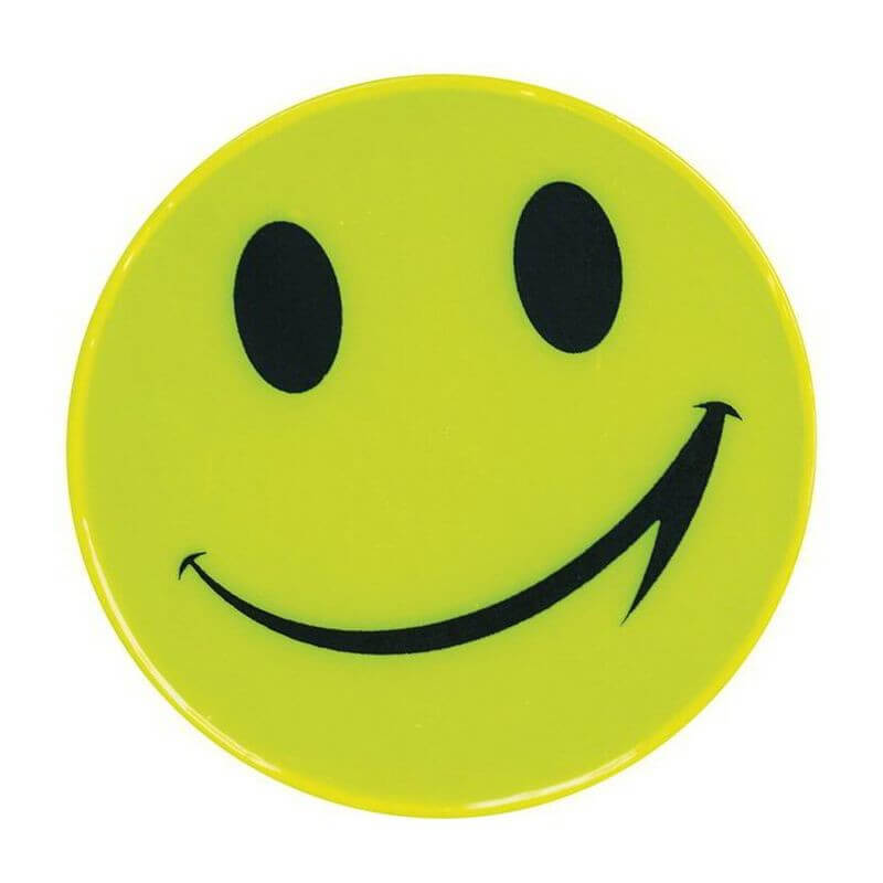 Reflexní nálepka smajlík z PVC. Vhodná na šití nebo lepení.
