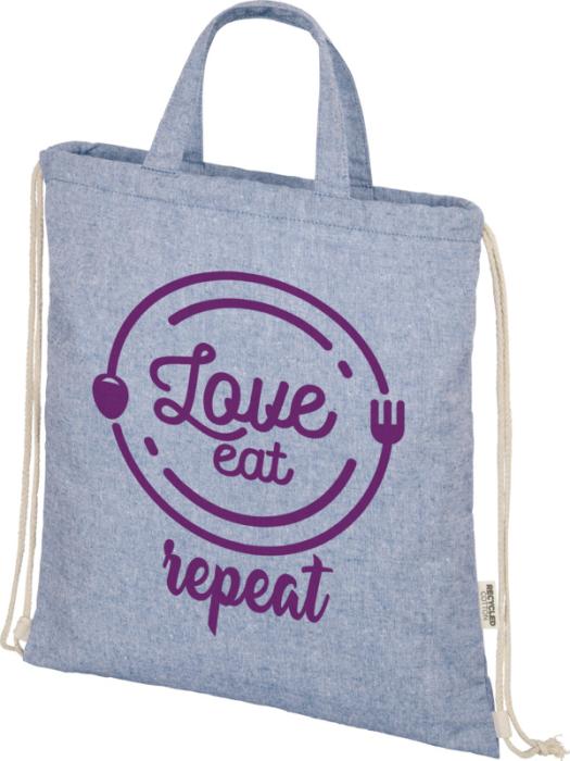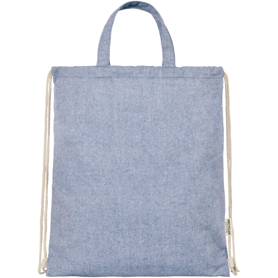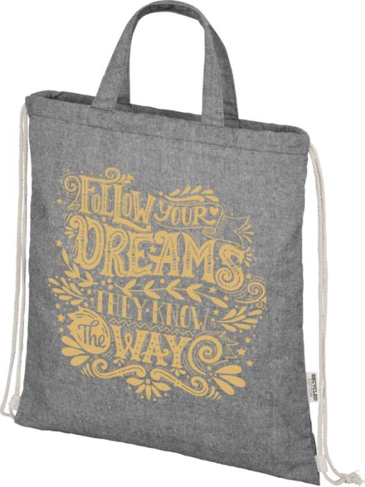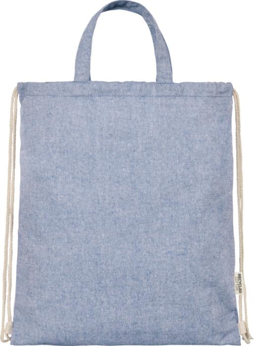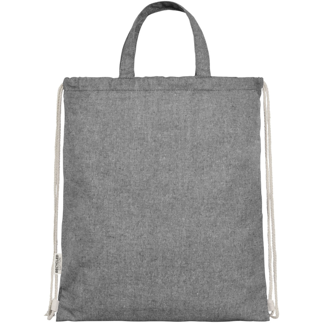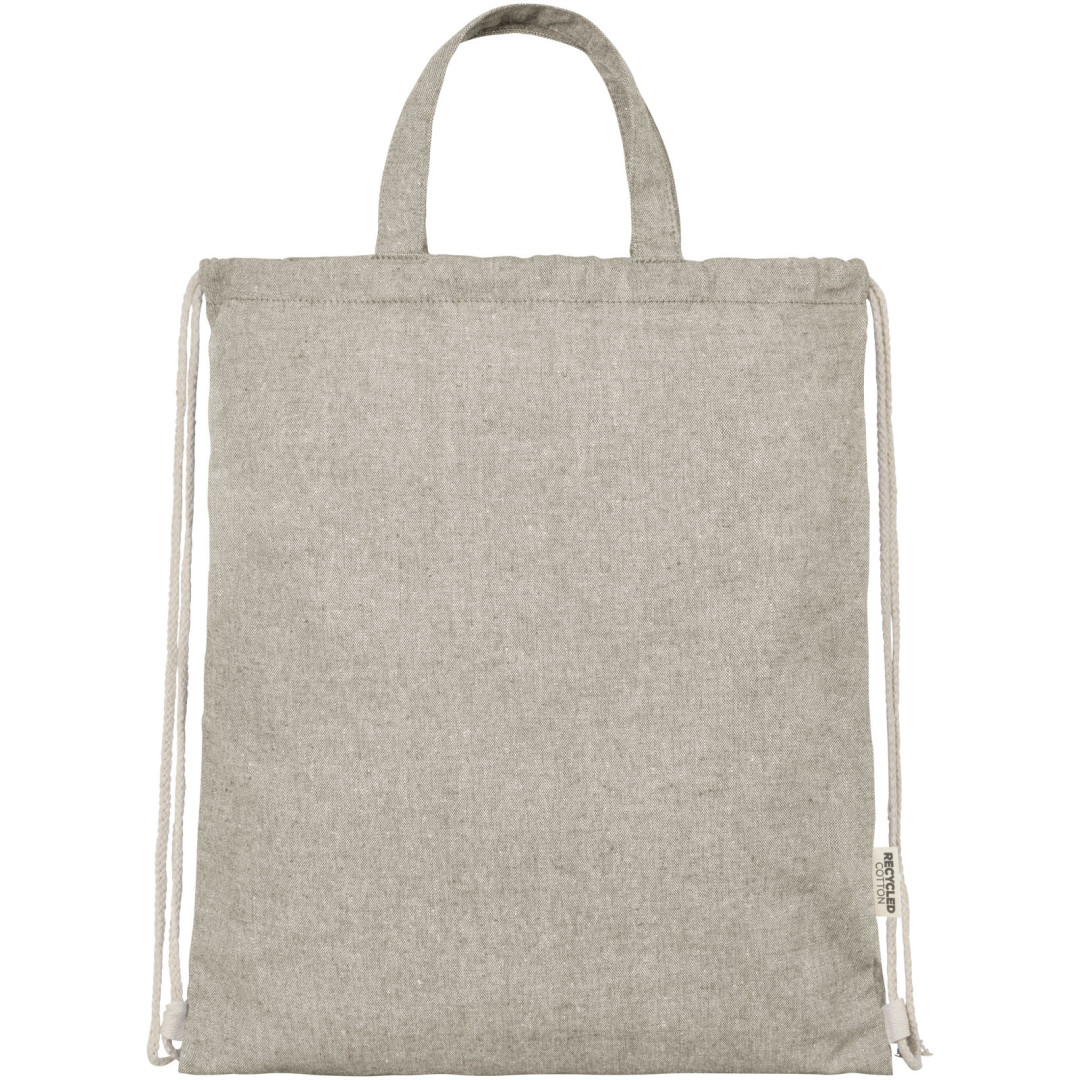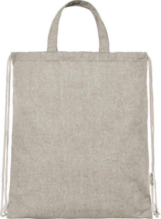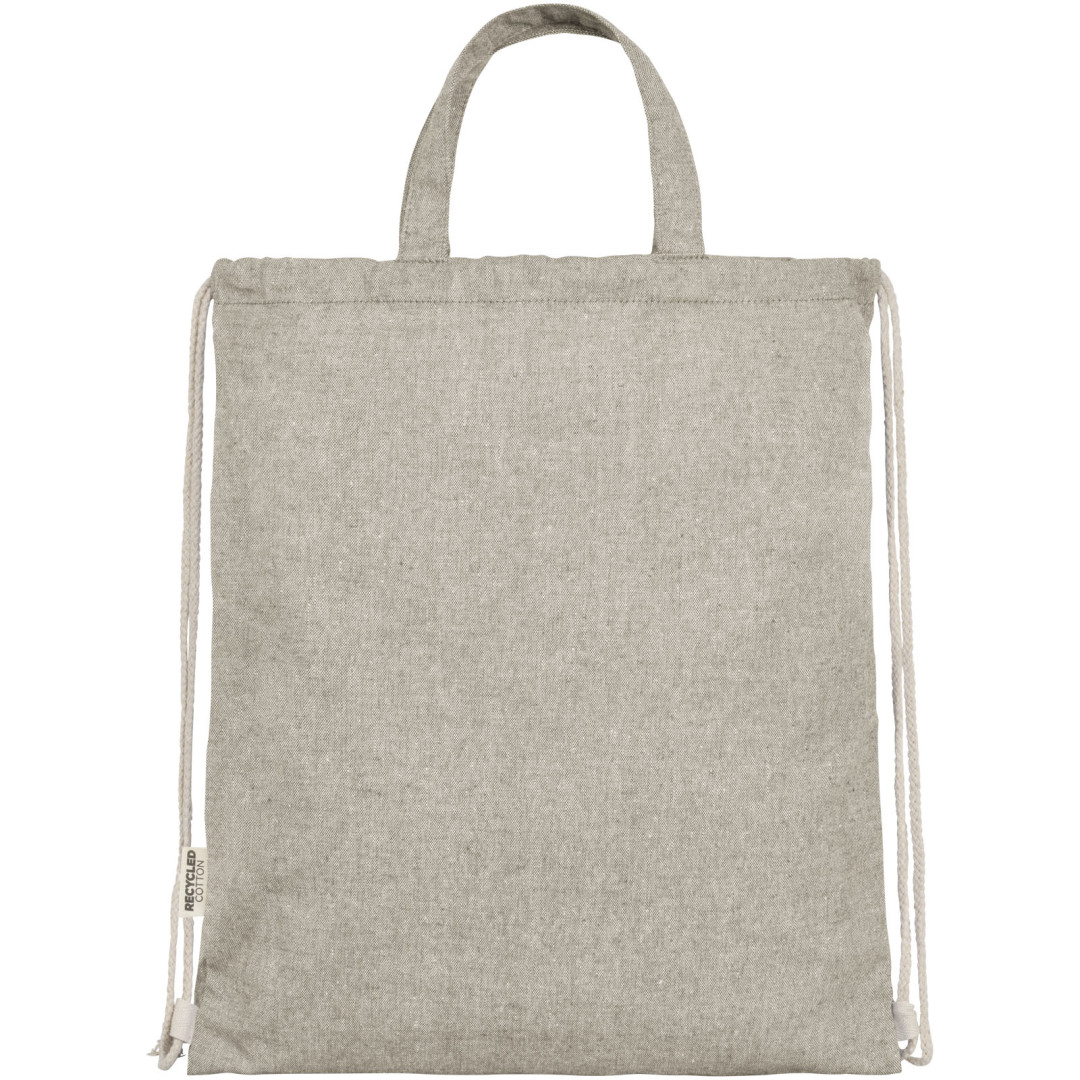 Šňůrkový batoh vyrobený ze směsi recyklované bavlny a polyesteru o gramáži 150 g/m². Velký hlavní oddíl uzavíratelný bavlněnou šňůrkou v přírodní barvě. Recyklovaná bavlna pochází z výrobního odpadu textilních továren, vznikajícího během procesu řezání. Podobné barvy jsou míchány dohromady, takže další barvení není nutné. Vzhledem k povaze recyklované bavlny může dojít k velmi mírným barevným odchylkám. Tato vlastnost výrazně přispívá k autentičtějšímu vzhledu. Každý batoh je také dodáván s indikátorem Aware™. Tato inovativní funkce umožňuje uživatelům sledovat původ a cestu jejich položky prostřednictvím QR kódu, čímž zvyšuje transparentnost v dodavatelském řetězci a podporuje pevnější propojení mezi produktem a jeho výrobním procesem. Nosnost do 5 kg. Délka rukojeti: 14 cm. 80% recyklovaná bavlna a 20% recyklovaný polyester.