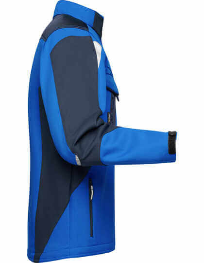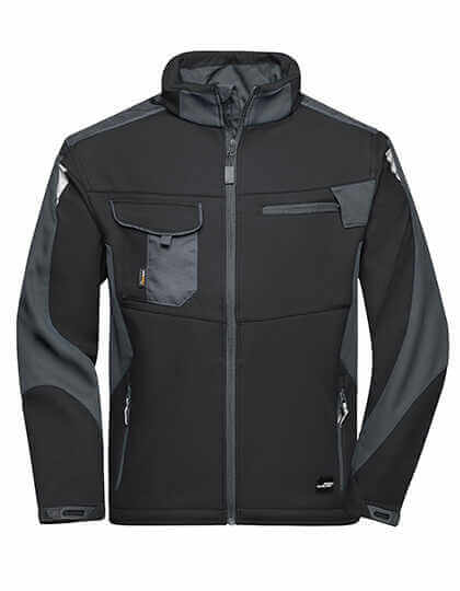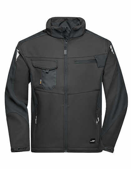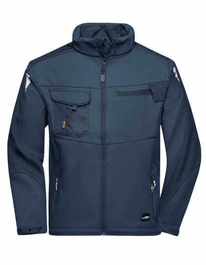 Robustní a odolný softshellový materiál | Odolnost proti větru a vodě (vodní sloupec 2 000 mm) | Prodyšnost a propustnost pro vodní páru (2 000 g/m² / 24 h) | Stojáček | Oblast ramen vyztužená materiálem CORDURA® | Krytý zip po celé délce s ochranou proti větru | Boční a náprsní kapsy na zip | Náprsní kapsa s klopou, vnitřní kapsy | Reflexní prvky (bez ochranné funkce / bez osobních ochranných pomůcek) na pažích a vzadu