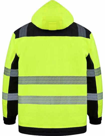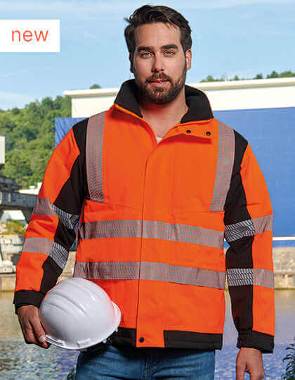 Certifikováno podle EN ISO 20471: 2013 + A1: 2016, třída 3 a EN 343:1, oranžová také vyhovuje GO / RT 3279 | Vodotěsné do vodního sloupce 8 000 mm | Větruvzdorné | Segmentovaný reflexní pruh pro volnost pohybu | Zip s ochranou proti větru po celé délce a patentky ve výstřihu | Kapsy se zipem na obou stranách | Dvě skryté kapsy pod dolními reflexními pruhy | Kapuci lze složit do límce | Manžety, které lze nastavit zapínáním na suchý zip | Další kapsa na vnitřní straně | Lze prát do 30 °C | Vybaveno čárovým kódem EAN
