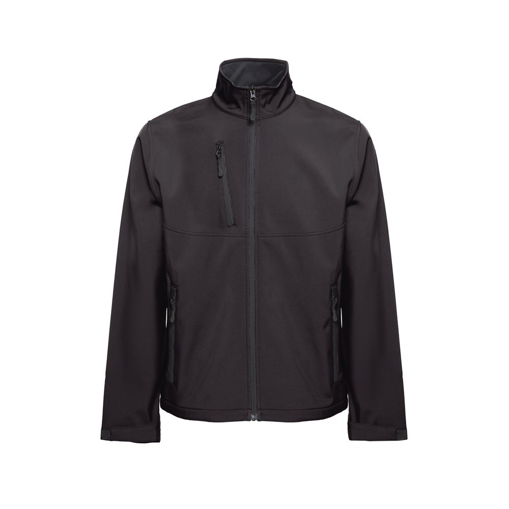 Softshellová bunda z 96% polyesteru a 4% elastanu (280 g/m²) se dvěma vrstvami a voděodolným potahem. Fleecová podšívka se 2 předními kapsami a diagonální náprsní kapsou, oba zipy s gumovými stahovači. Nastavitelné zapínání se suchým zipem a šňůrkou ve spodní části. Velikosti: XS, S, M, L, XL, XXL