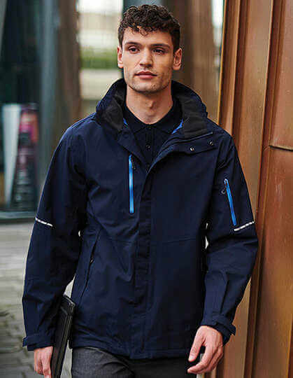 Nepromokavý a prodyšný strečový materiál Isotex 10 000 vyhovuje normě EN343 3:2, utěsněné švy a povrchová úprava DWR (odolná vodoodpudivá) pro ochranu za každého počasí | Panel s termoreflexní podšívkou zadržuje teplo | Ochranné kapsy RFID blokují skenery, a tím chrání vaše údaje a snižují riziko digitální krádeže | Sbalitelná kapuce, kterou lze schovat do límce | 2 spodní kapsy na zip, 1 voděodolná kapsa na rukávu na zip a 1 voděodolná náprsní kapsa na zip | Zip CF krytý chlopní proti větru | Skrytý zip v podšívce umožňuje přístup k výšivce, nastavovače pružné šňůrky na lemu | Reflexní prvky na rukávech a na zádech