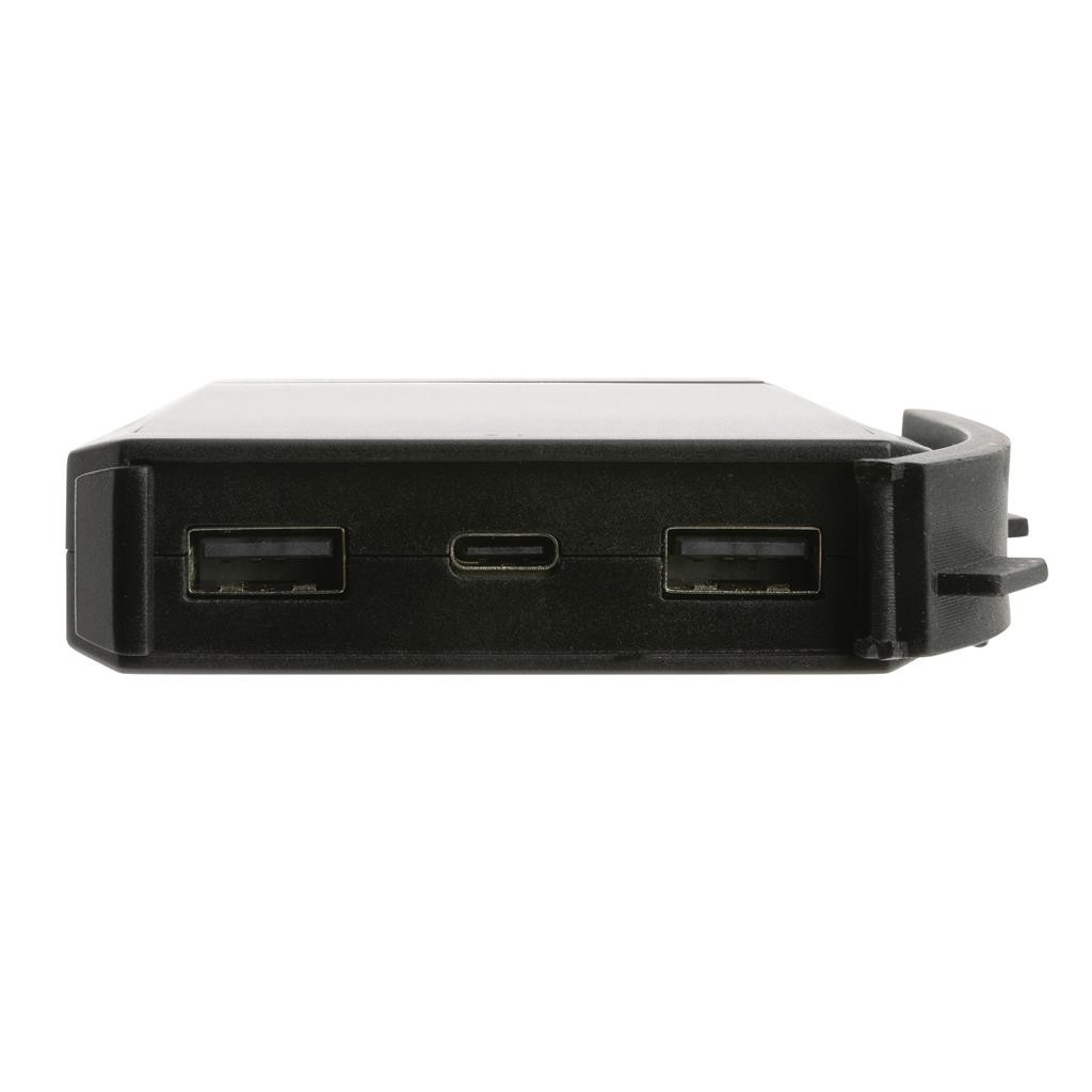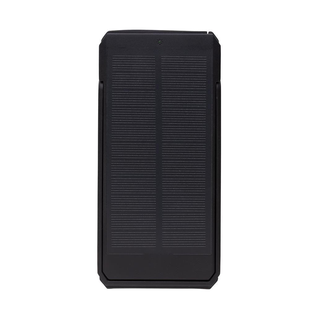 Solární powerbanka s kapacitou 10 000 mAh využívající vysoce kvalitní monokrystalické solární panely s 19 % konverzním poměrem. Nabíjecí rychlost závisí na slunečních podmínkách. Integrovaný stojánek pro nastavení v optimálním úhlu. Vyrobená z RCS recyklovaného ABS. RCS (Recycled Claim Standard) je globální standard, který umožňuje ověřit použití recyklovaného materiálu v produktu napříč celým dodavatelským řetězcem. Celkový podíl recyklátu dle váhy produktu: 18 %. Obsahuje vysoce kvalitní lithiovou baterii řady A s kapacitou 10 000 mAh. Solární nabíjecí rychlost: 5V/200mA. Vstup USB C: 5V/2A. Výstup USB A: 5V/2A, USB C: 5V/2A. Včetně nabíjecího kabelu z RCS recyklovaného TPE. Baleno v FSC kraftové dárkové krabičce. Ochranný vzor®. 1 baterií typu Li-poly súčasťou balenia.