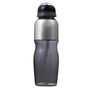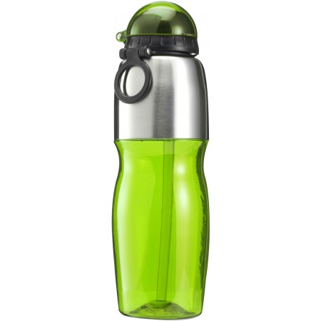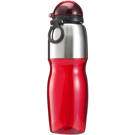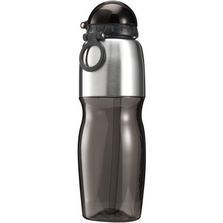 Průhledná plastová a nerezová sportovní láhev (800 ml) se sklopnou hubicí, víčkem a odnímatelným nosným kroužkem.