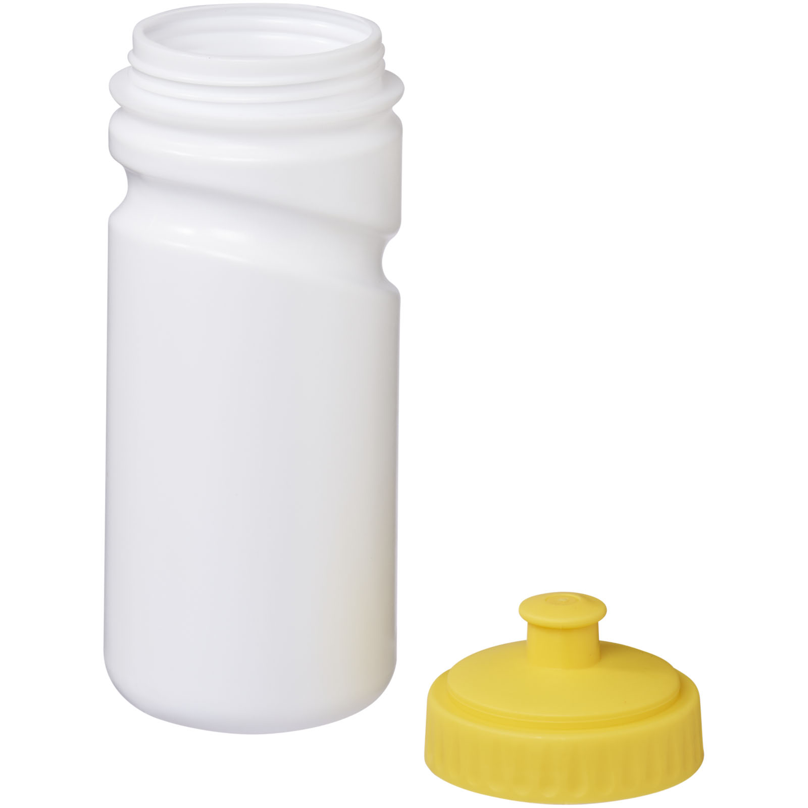 Sportovní láhev Easy Squeezy - bílá. Jednoplášťová láhev s bajonetovým uzávěrem a výsuvnou slámkou. Objem 500 ml. HDPE. Typy potlačí/dekor:: Rotacni sitotisk, Tamponovy tiskFarba Pantone: 122CFarba HEX: FFFFFF,FAE700