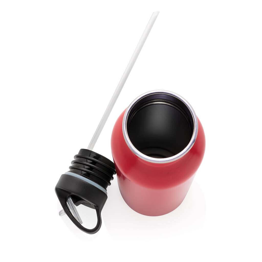 Láhev se sportovním víčkem uzpůsobeným pro rychlé doušky vody při cvičení či na cestách. Ideální velikost, nízká hmotnost a vysoká odolnost díky použití kvalitní nerezavějící oceli 18/8. Doporučeno pouze pro studené nápoje. Objem: 710ml. PMS color 1: 289 PMS color 1: Black PMS color 1: 428 PMS color 1: Mist white PMS color 1: 186C PMS color 1: 2728