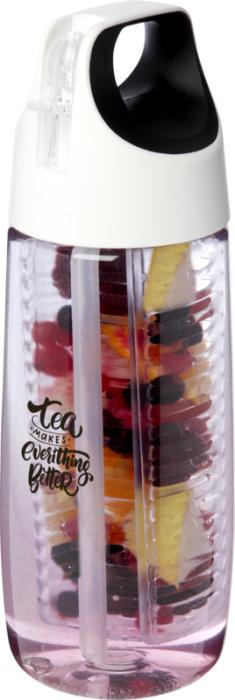 Jednostěnná sportovní láhev vyrobená z recyklovaného PET materiálu se snadno použitelným ergonomickým designem a víčkem odolným proti vylití. Odklápěcí vršek a odnímatelný spařovač vám umožní přidat do nápoje vaše oblíbené ovoce nebo bylinky. Neobsahuje BPA. Objem je 700 ml.