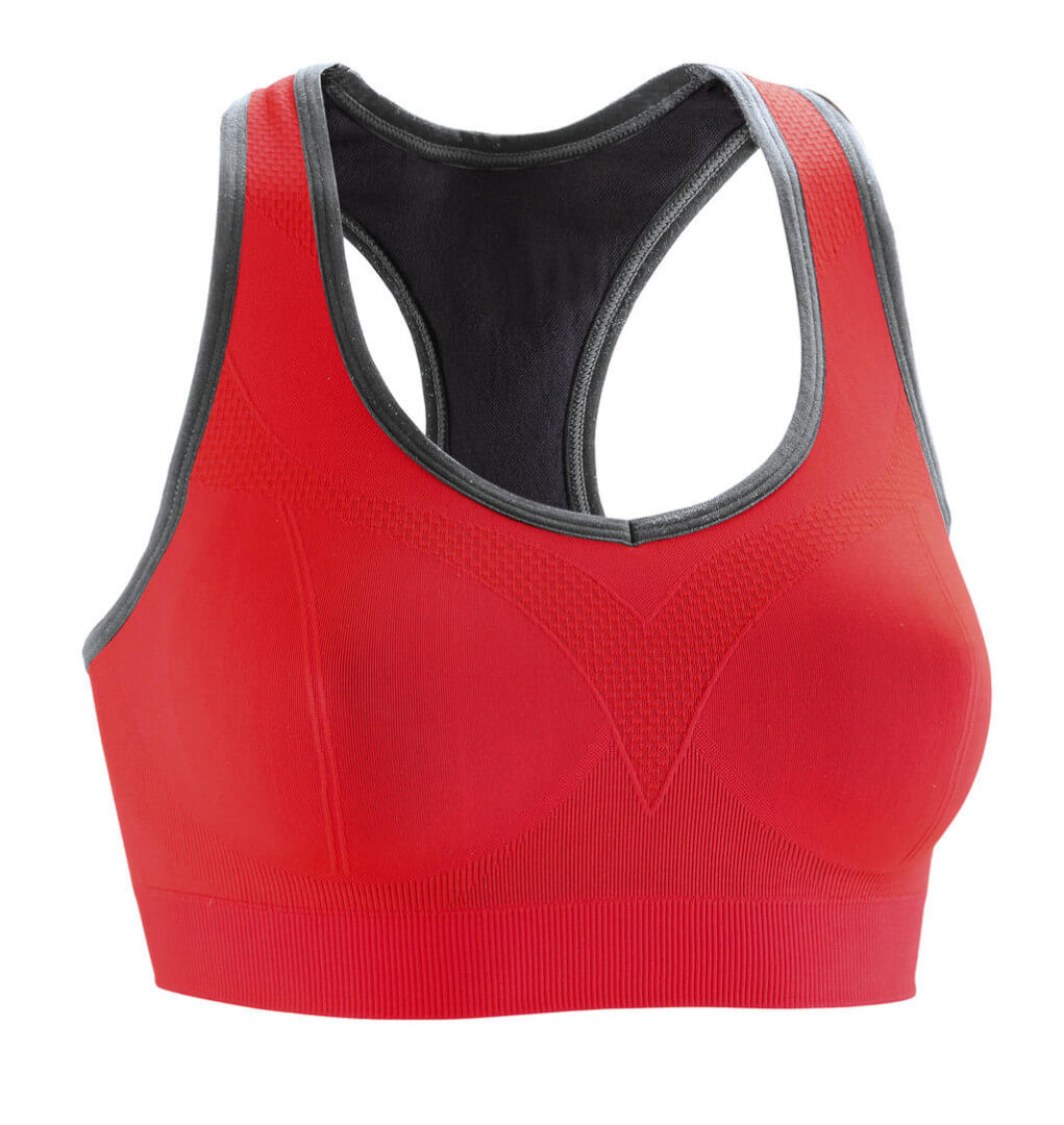 Dvouvrstvá textilie, 360 ° bezešvý úplet · prodyšná a Quick Dri úprava · vzadu Racerback · bez štítkuk.