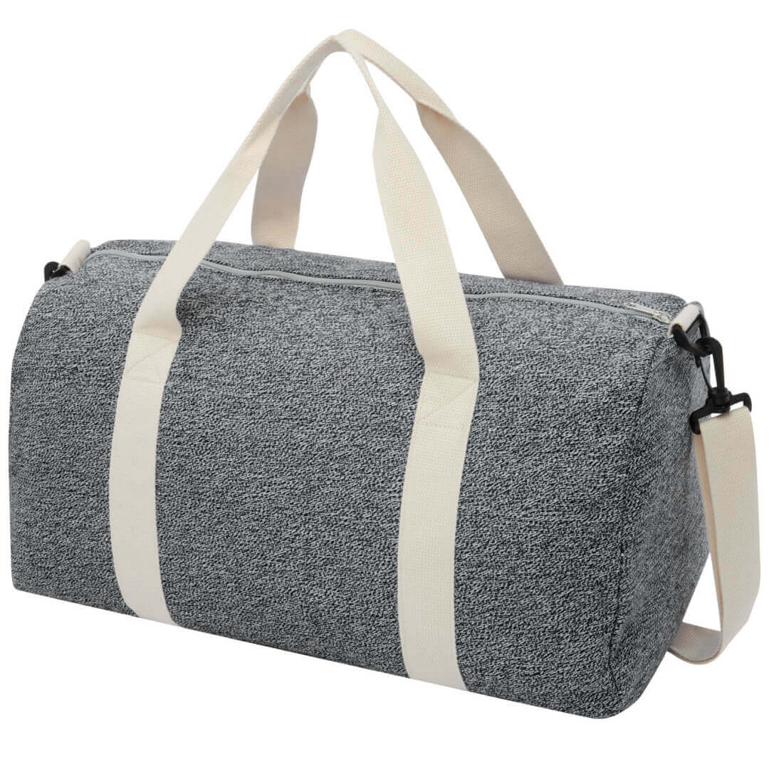 Sportovní taška vyrobená ze směsi recyklované bavlny a polyesteru s nastavitelným ramenním popruhem. Recyklovaná bavlna pochází z výrobního odpadu textilních továren, vznikajícího během procesu řezání. Látka z materiálů podobných barev,...