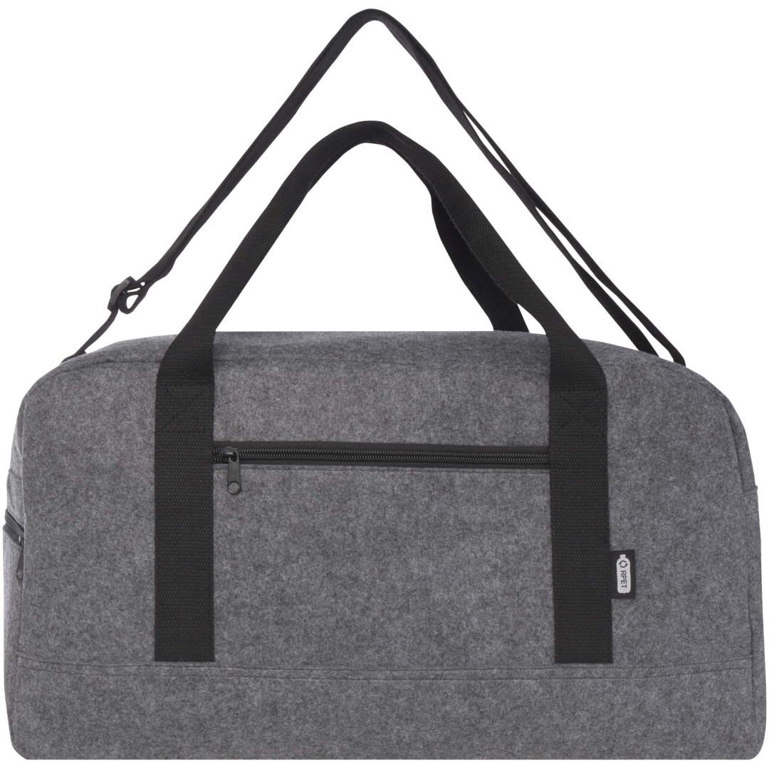 Praktická sportovní taška vyrobená ze špičkové měkké a odolné recyklované plsti s certifikací GRS. Obsahuje velkou hlavní přihrádku, přední kapsu na zip, boční kapsu, odnímatelné a nastavitelné ramenní popruhy a pohodlná bavlněná ucha pro různé způsoby nošení. Vybaveno malými nožičkami/cvoky na dně, takže se taška nedotýká země, což pomáhá předcházet tomu, aby se taška neznečistila nebo nenavlhla. Objemová kapacita: 35 litrů.